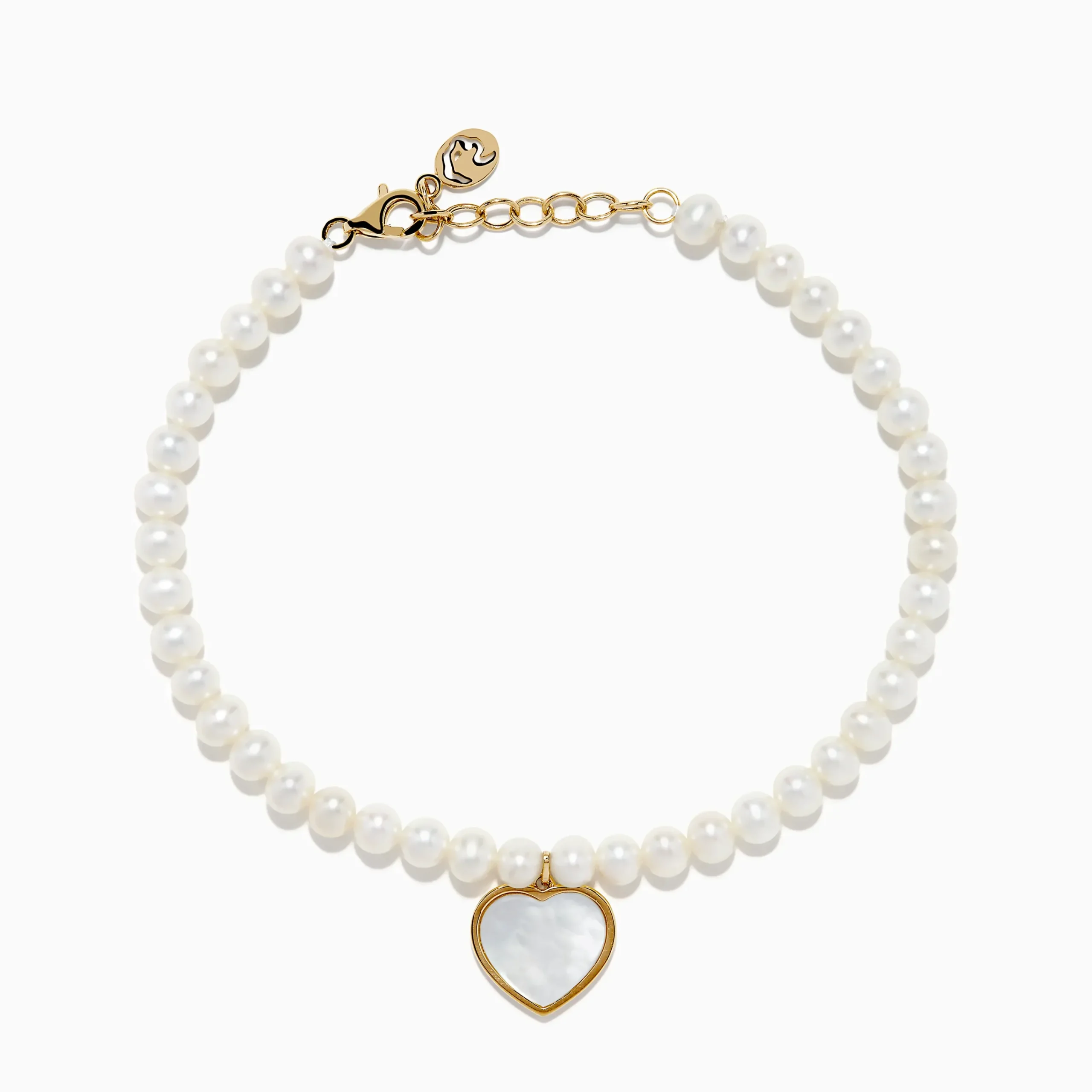 14K Gold Fresh Water Pearl and Mother of Pearl Heart Charm Bracelet