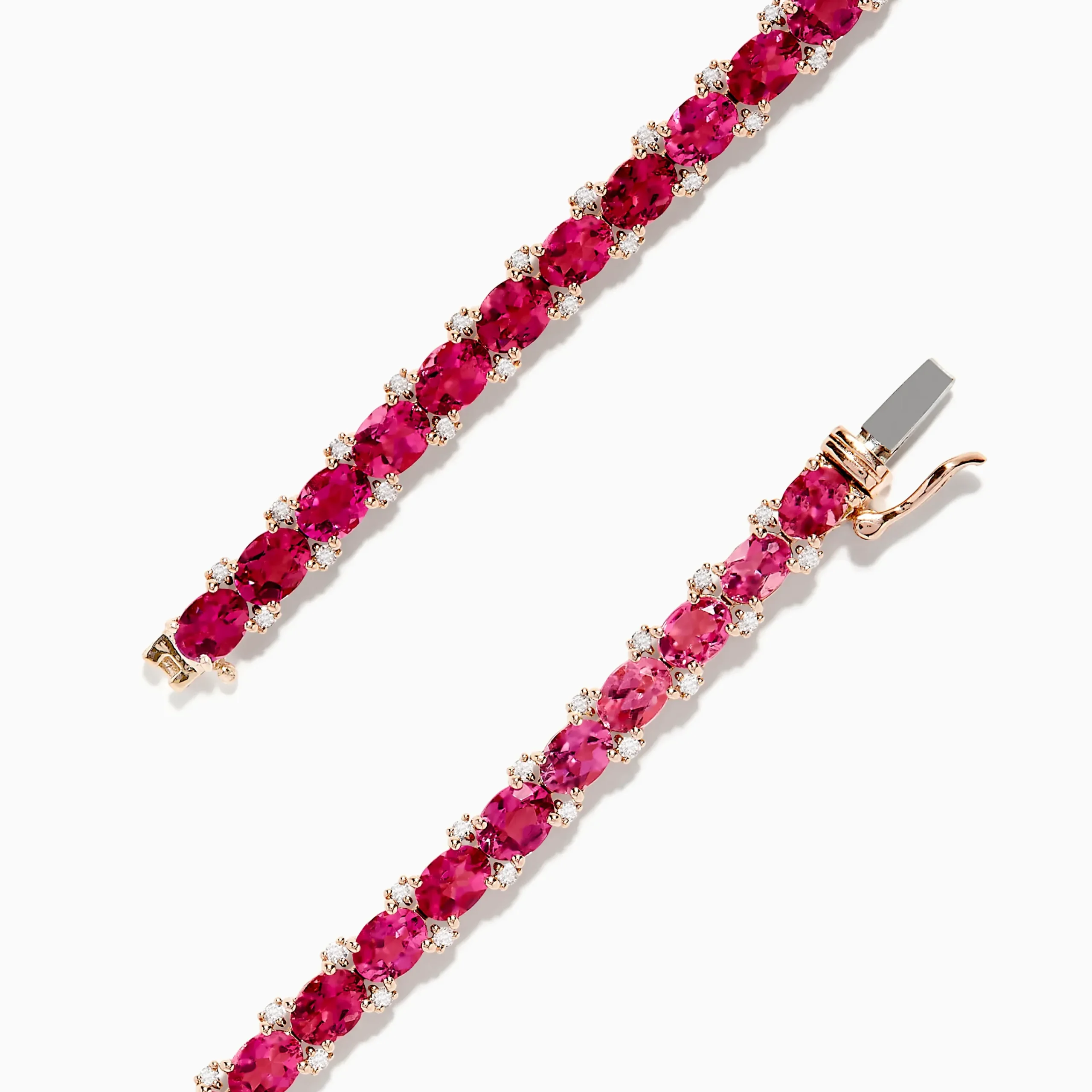 Effy 14k Rose Gold Oval Pink Tourmaline and Ruby Tennis Bracelet 6.56 TCW
