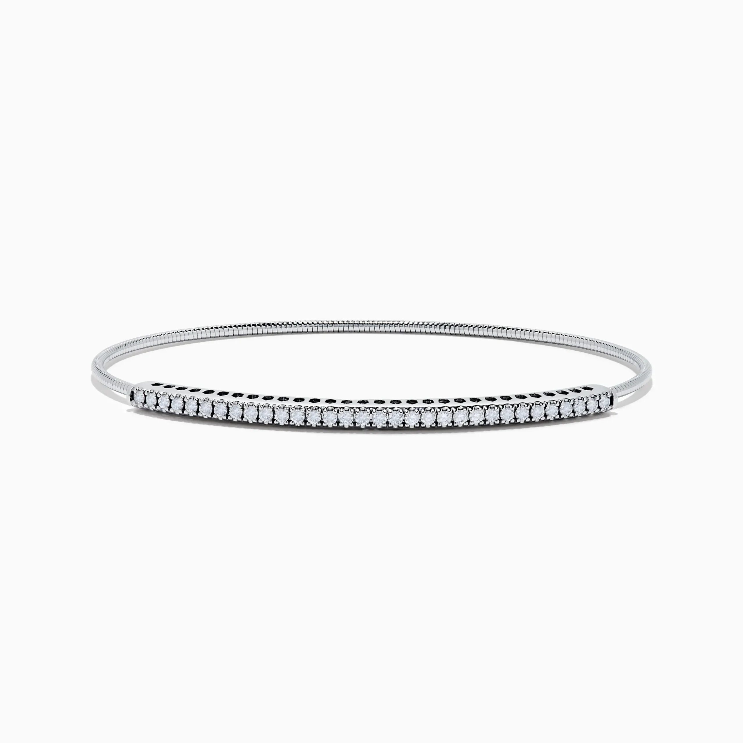 Metal:14K Gold Metal Color:WhiteStone: Round Diamond 0.614K White Gold Flexible Diamond Bangle