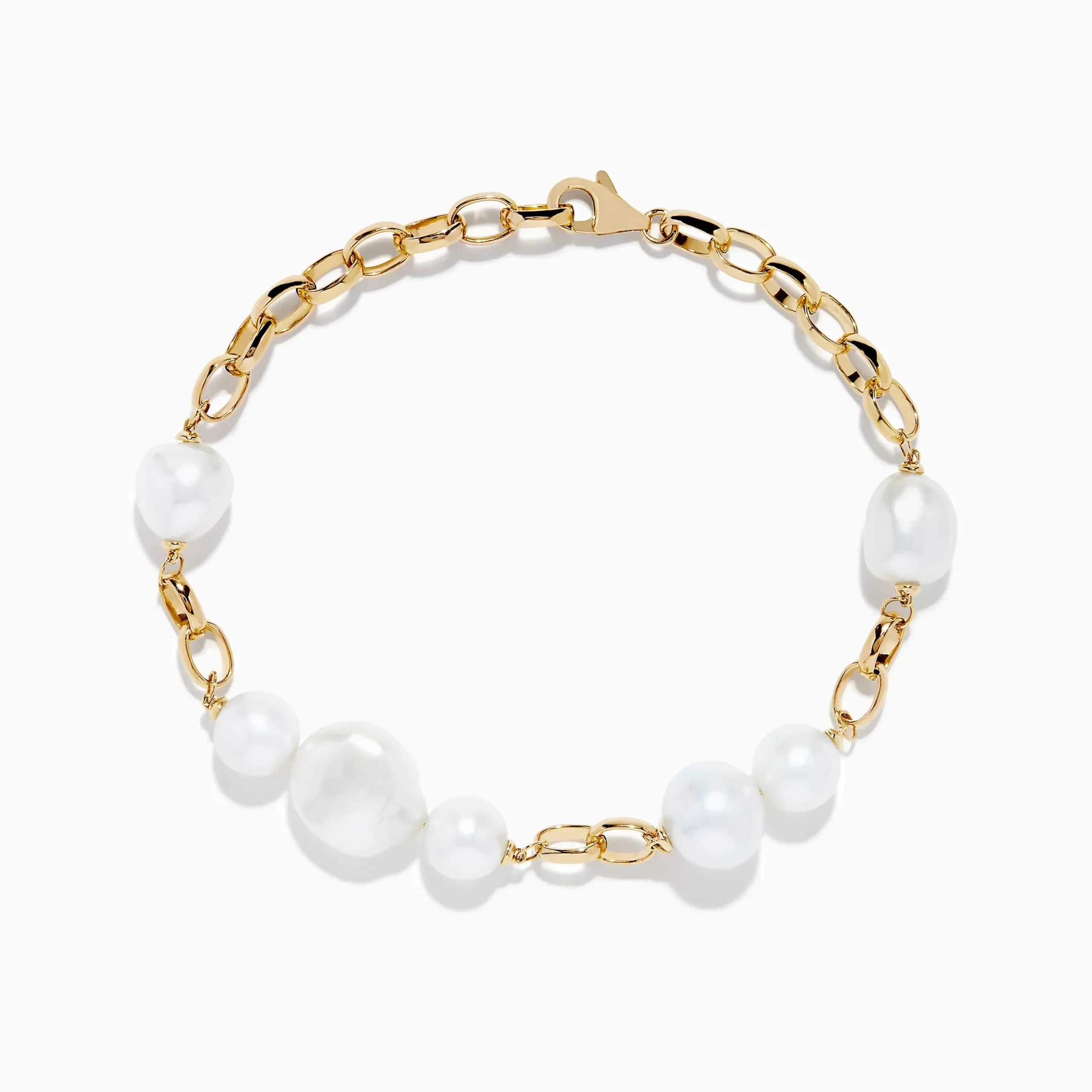 Metal:14K Gold Metal Color:YellowStone: Multi Shape Pearl 7.0 – 11.0mm14K Yellow Gold Fresh Water Pearl Chain Link Brace…