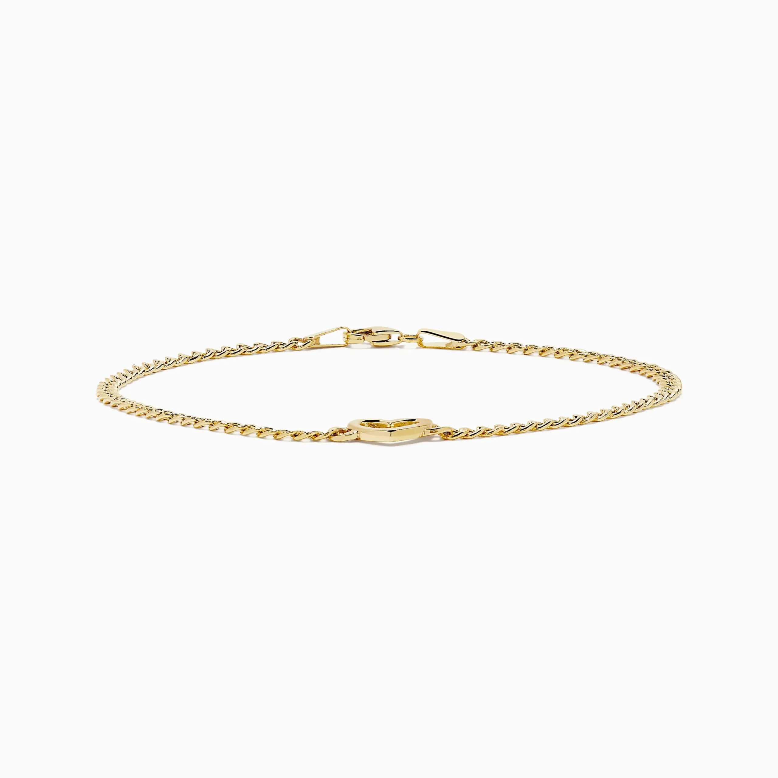 14K Yellow Gold Heart Curb Chain Bracelet