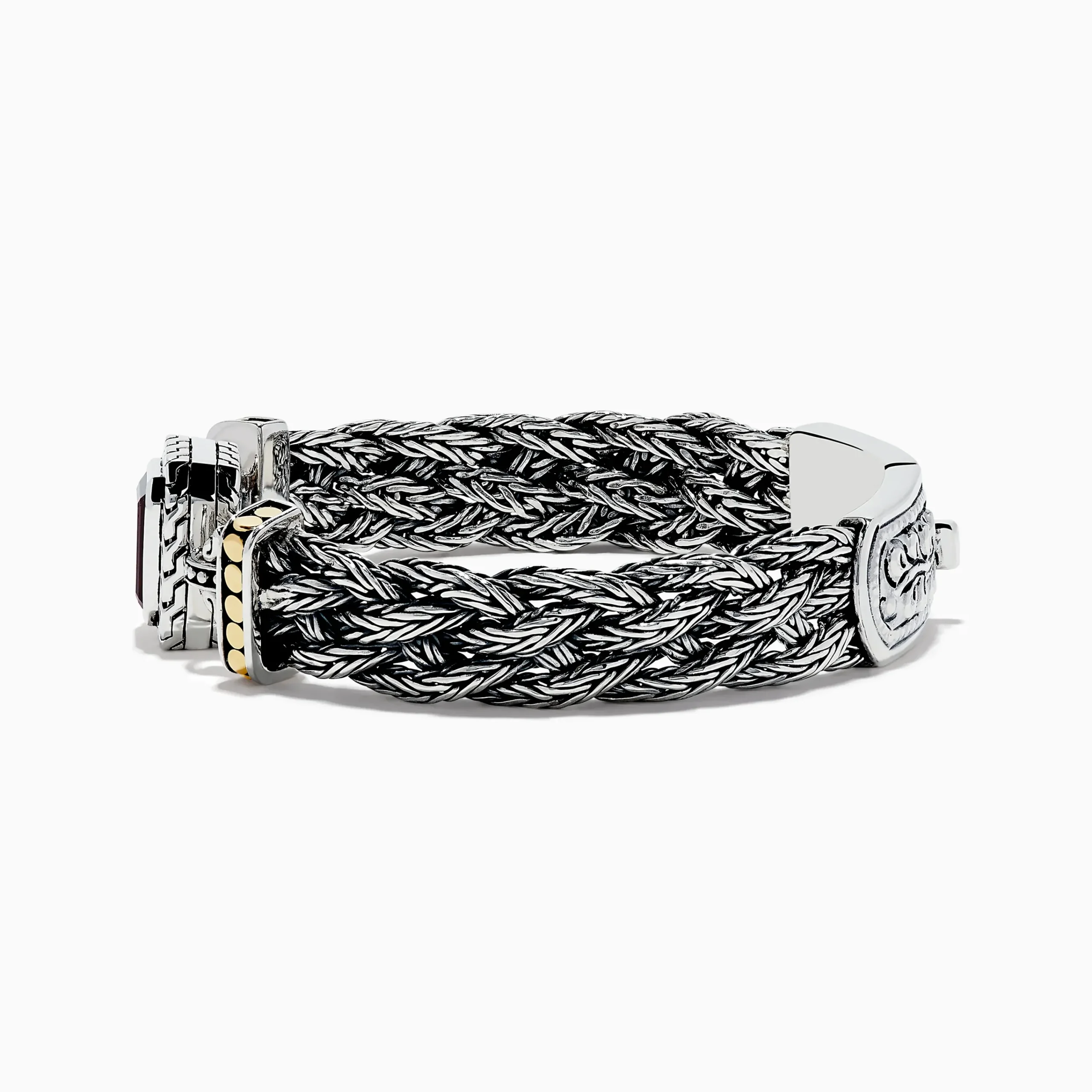 925 Sterling Silver/18K Yellow Gold Garnet Braided Chain Bracelet