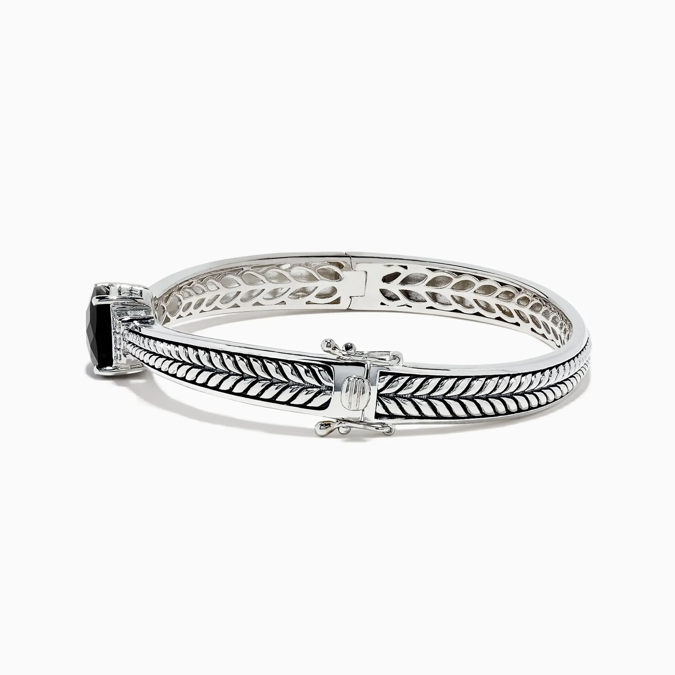 Effy 925 Sterling Silver Onyx and Diamond Bangle, 4.26 TCW