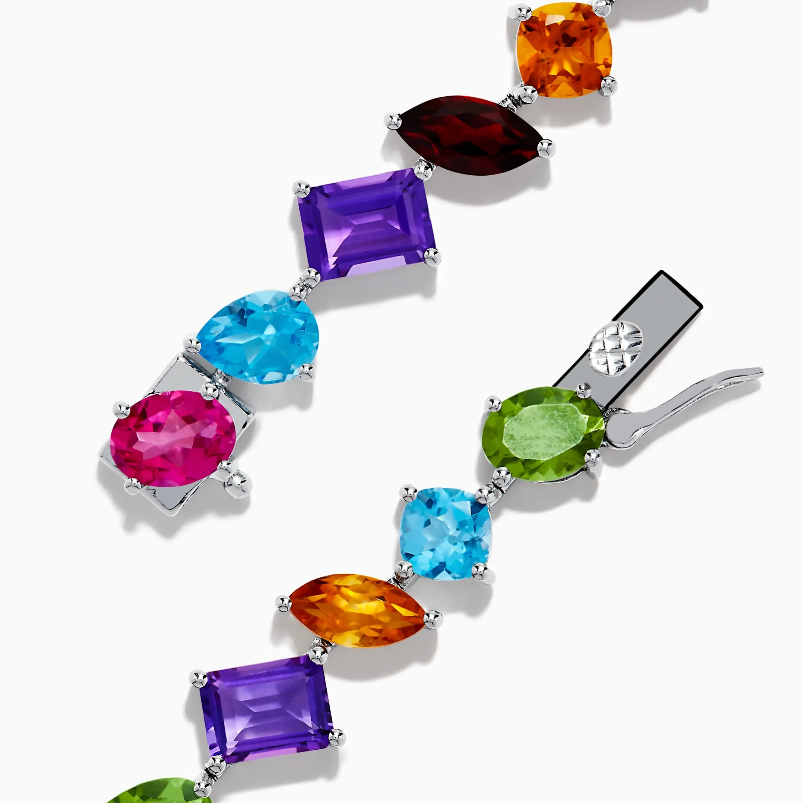 Metal:Sterling Silver Metal Color:WhiteStone: Multi Shape Multi Color 26.8Mosaic 925 Sterling Silver Multi Gemstone Brac…