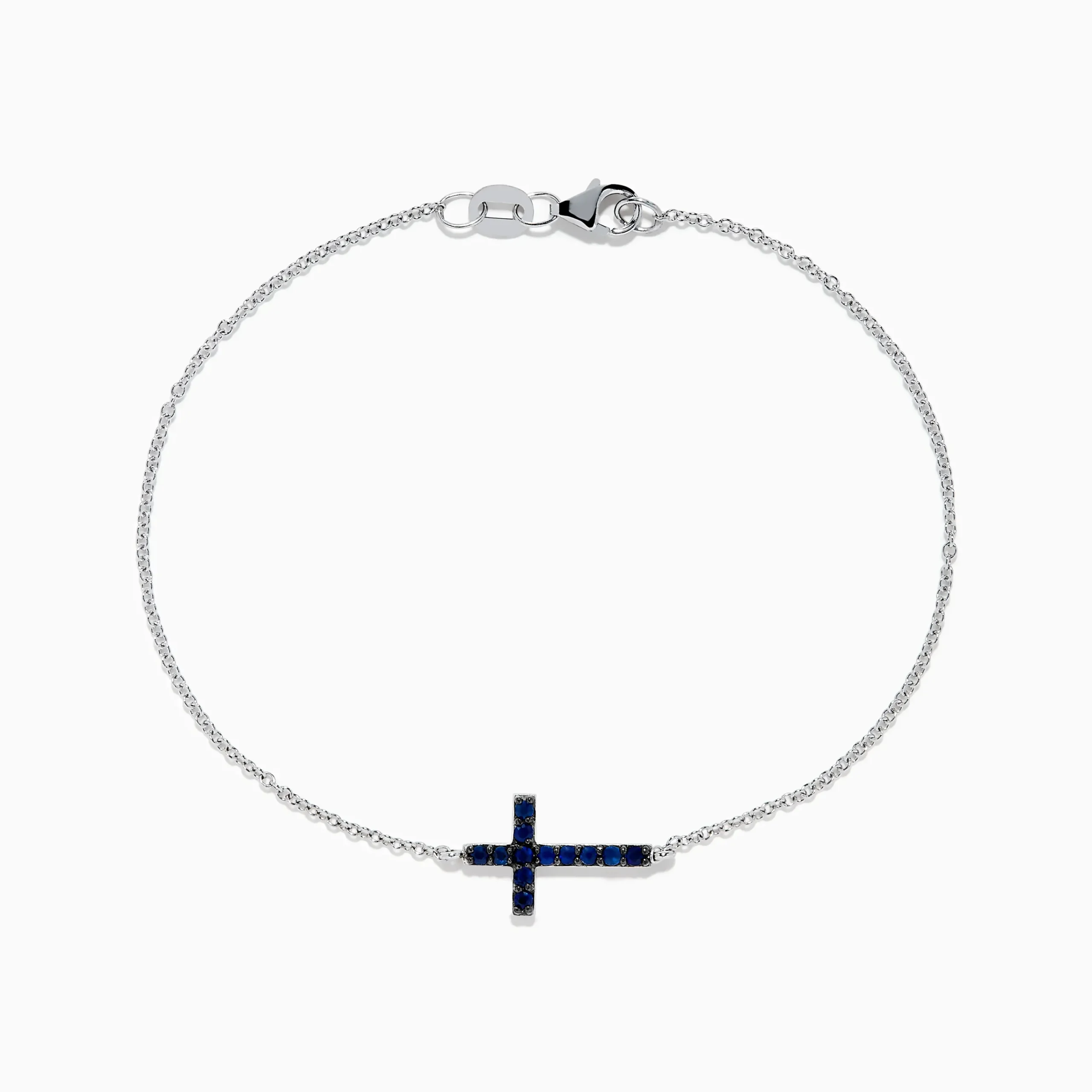 Metal:14K Gold Metal Color:WhiteStone: Round Blue Sapphire 0.17Novelty 14K White Gold Sapphire Cross Bracelet