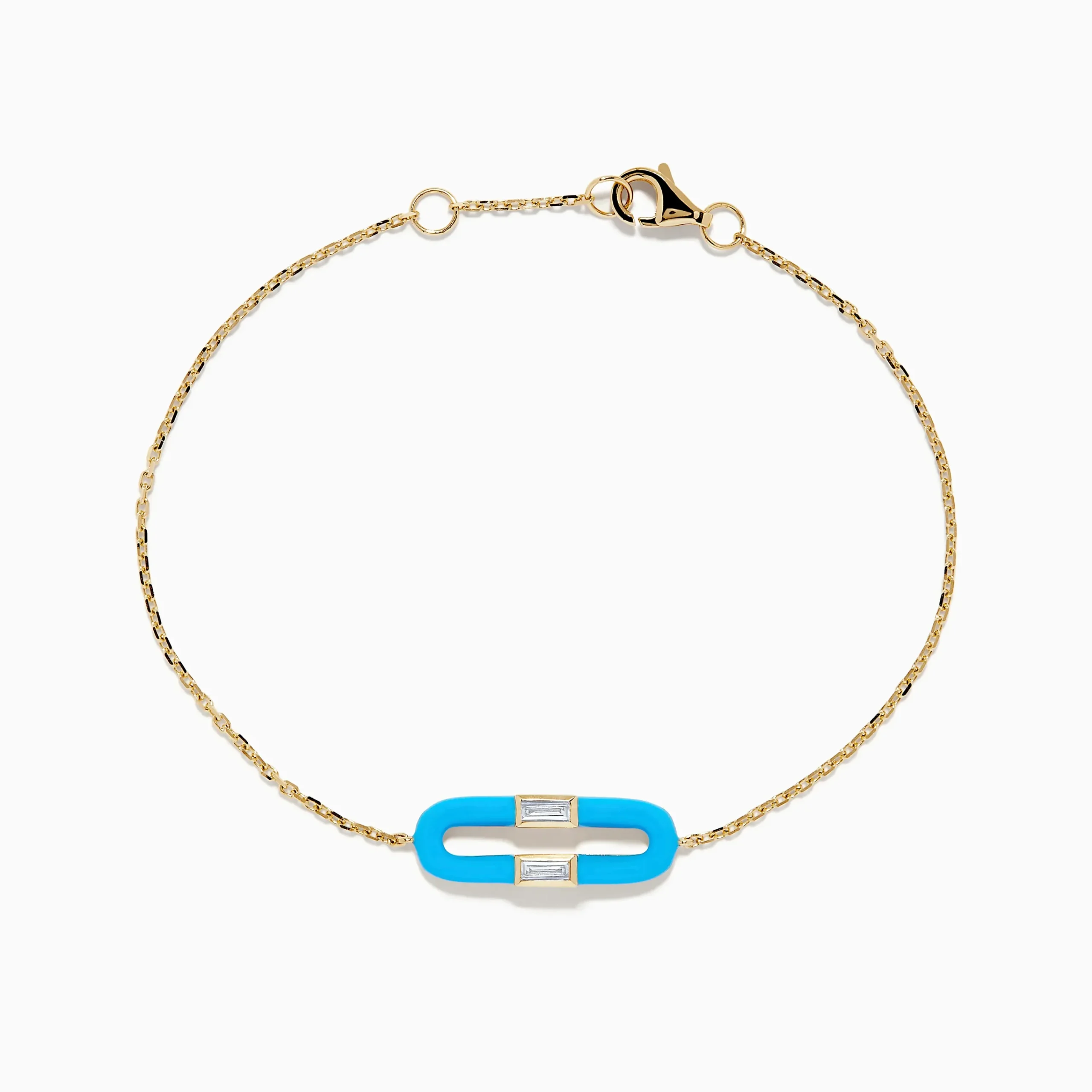 Effy Novelty 14K Yellow Gold Diamond and Enamel Paperclip Bracelet