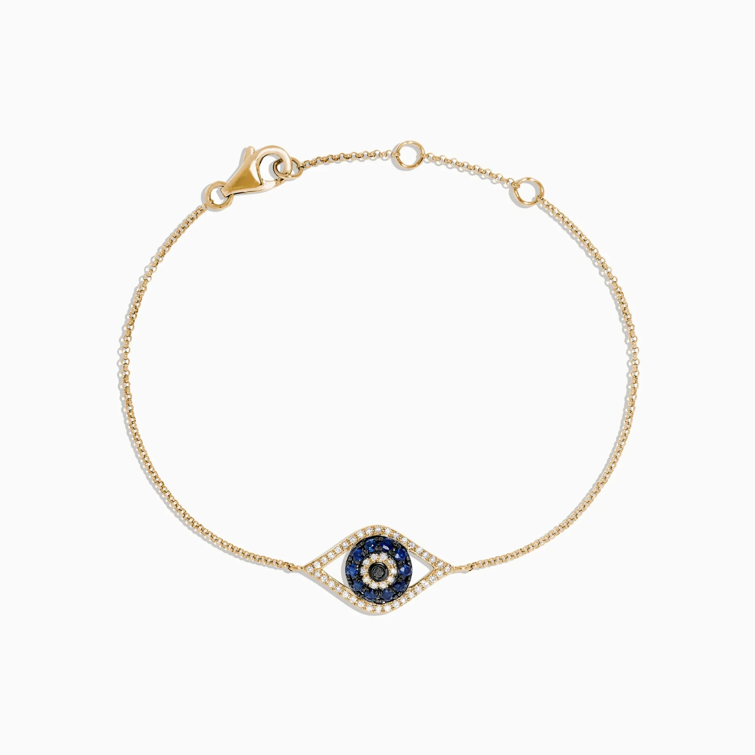 Effy Novelty 14K Yellow Gold Sapphire & Diamond Evil Eye Bracelet, 0.43 TCW