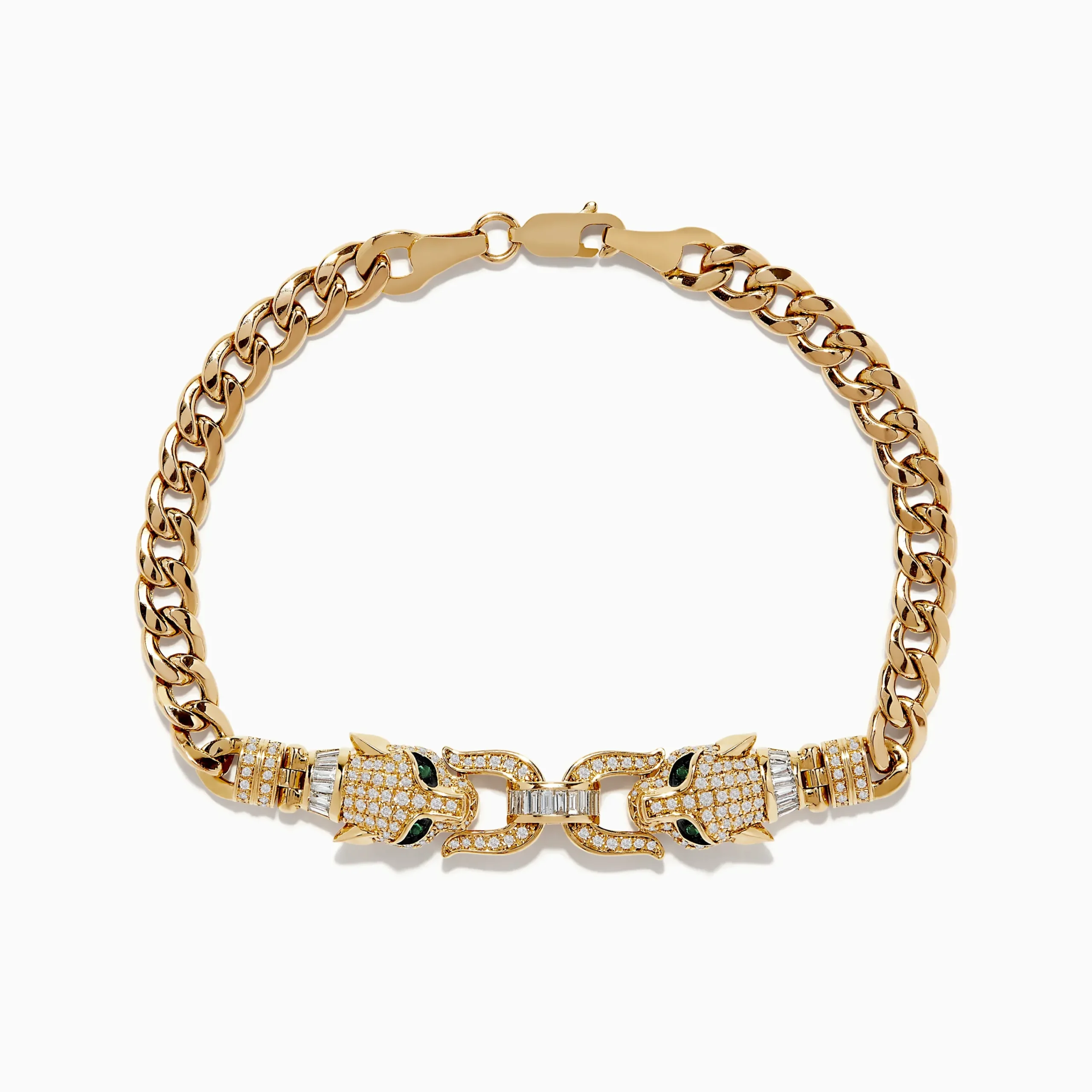 Effy Signature 14K Yellow Gold Diamond and Emerald Panther Bracelet