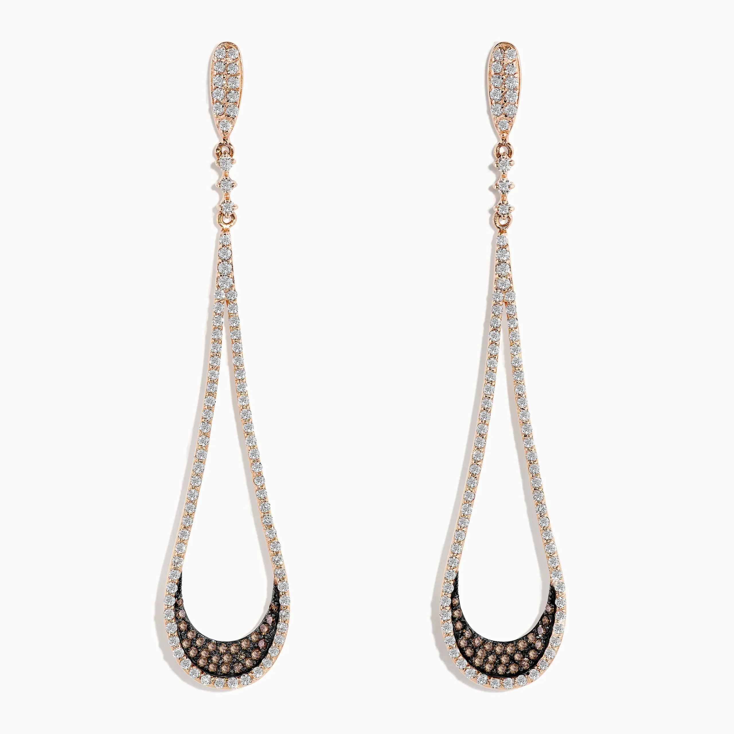 Effy Espresso 14K Rose Gold Brown and White Diamond Drop Earrings, 1.70 TCW