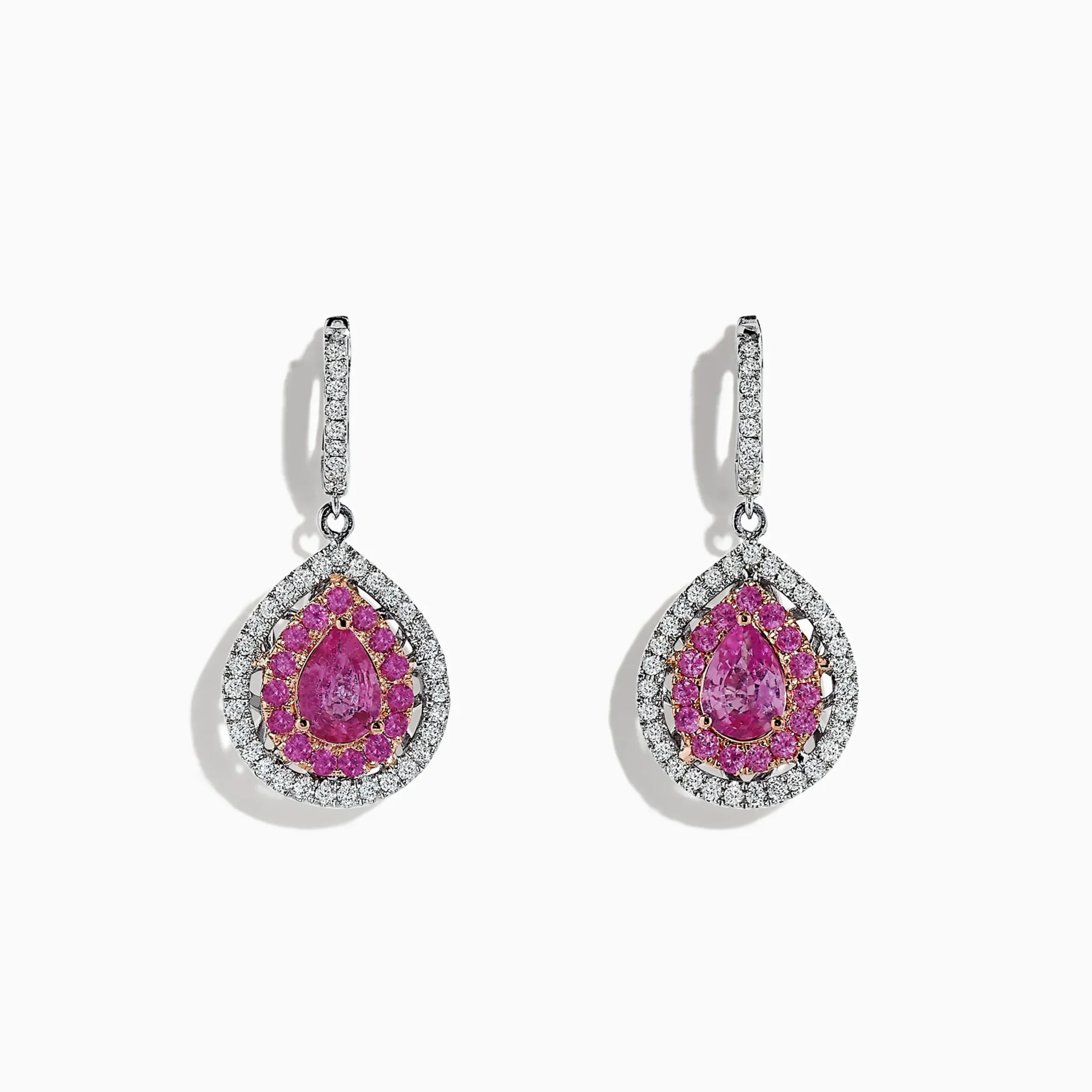 Effy 14K Two Tone Gold Pink Sapphire and Diamond Drop Earrings, 2.73 TCW