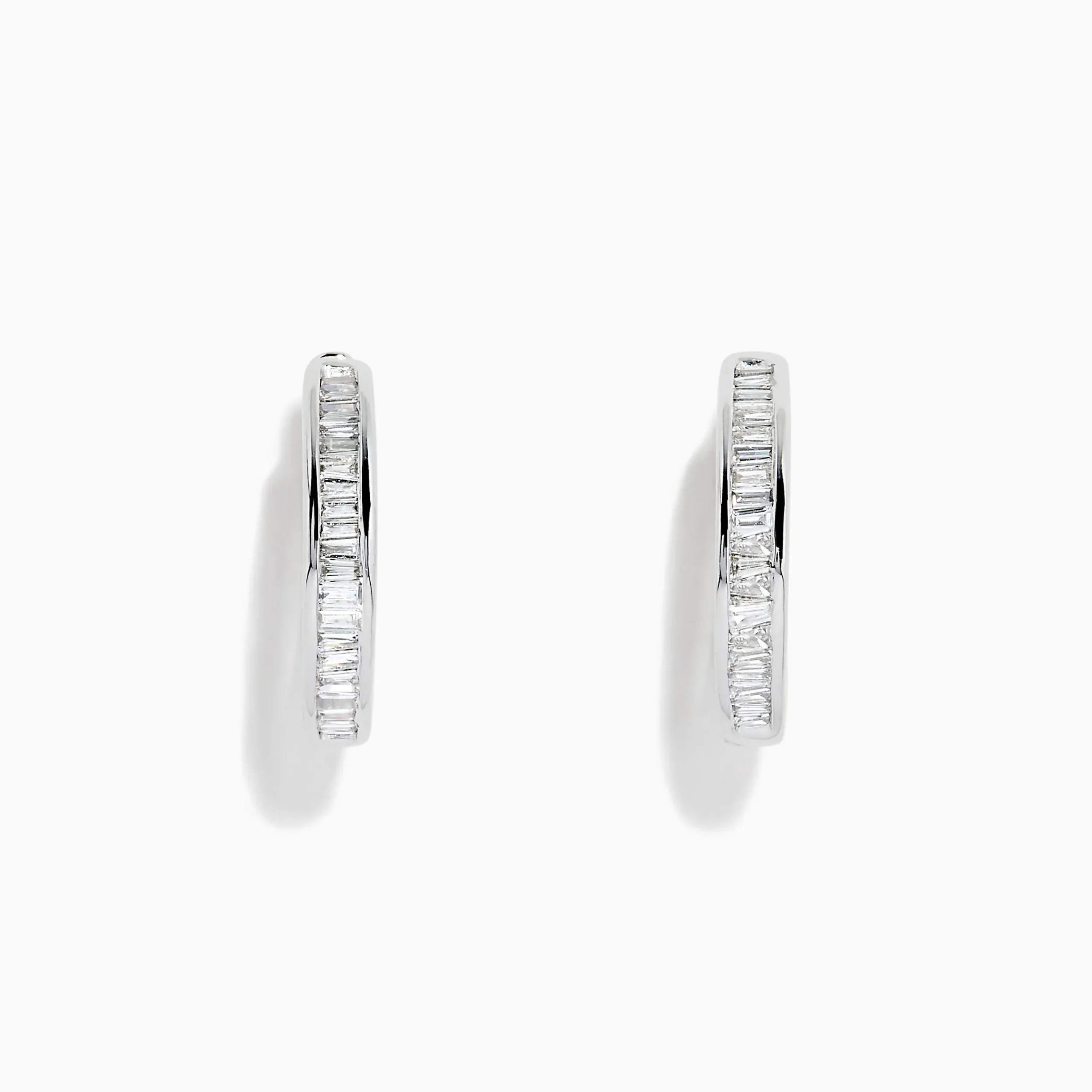 Effy 14K White Gold 7/8″ Diamond Hoop Earrings 0.49 TCW