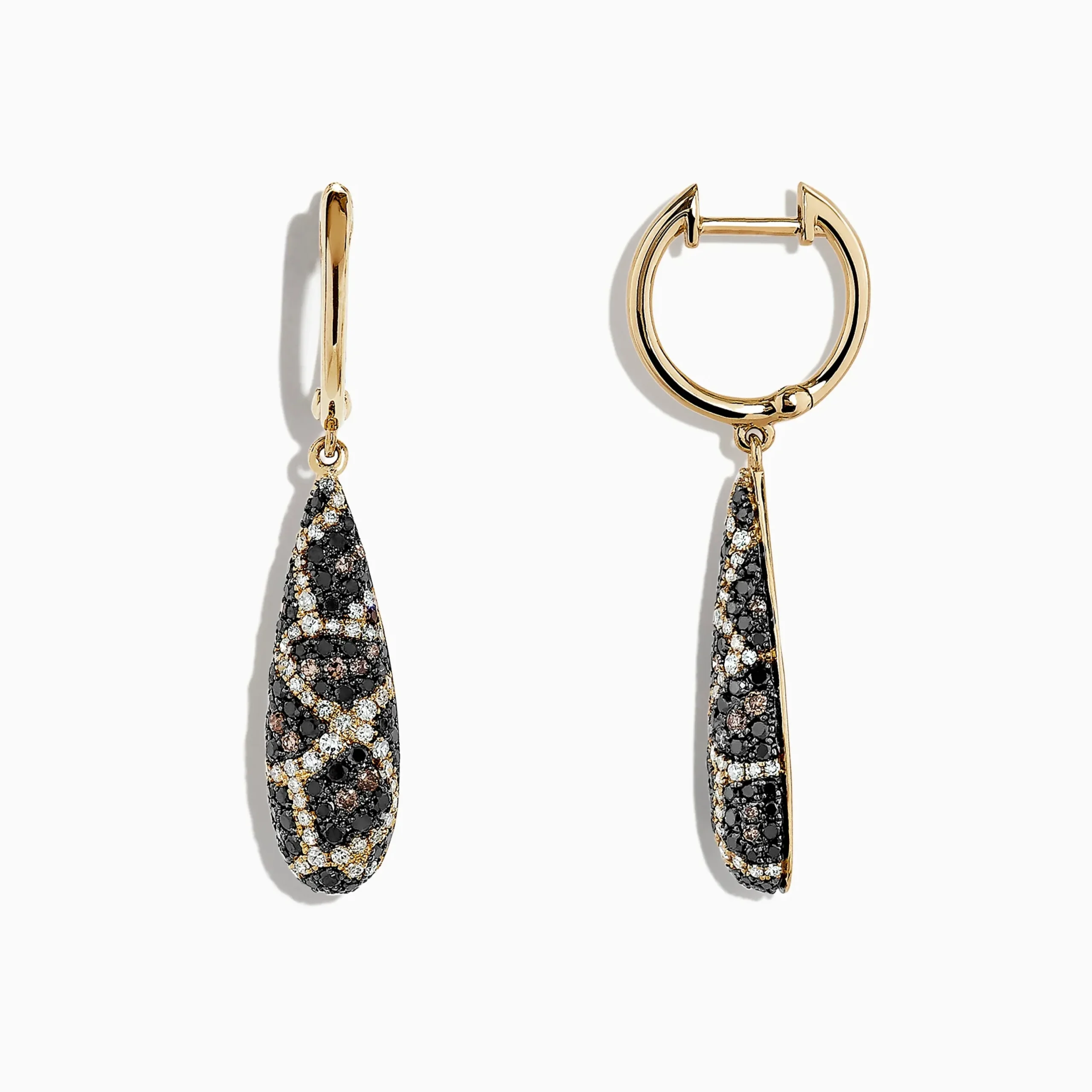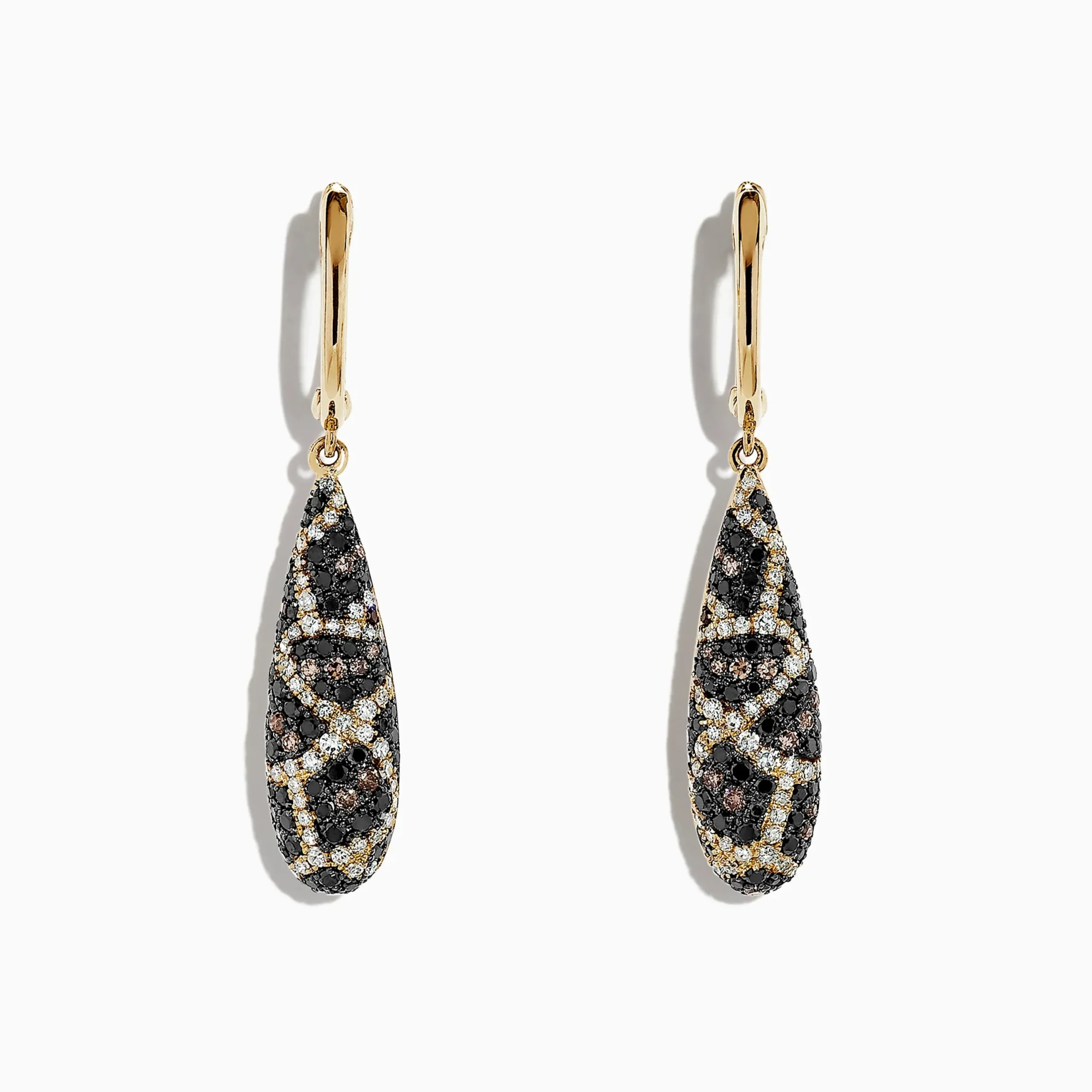 Effy 14K Yellow Gold Espresso, Black and White Diamond Earrings, 1.26 TCW