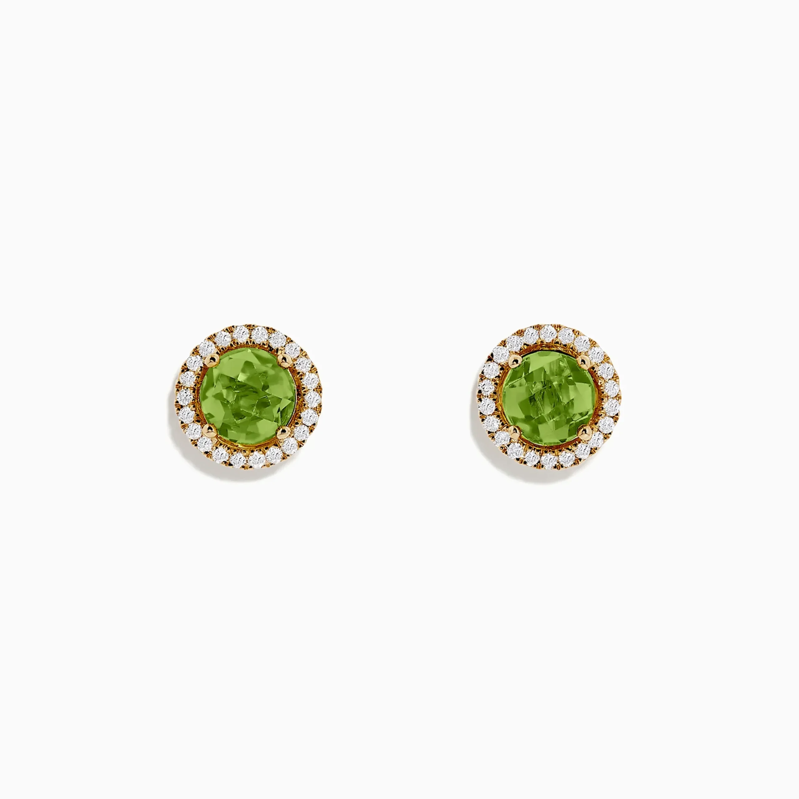 Effy 14k Yellow Gold Peridot and Diamond Stud Earrings, 2.21 TCW