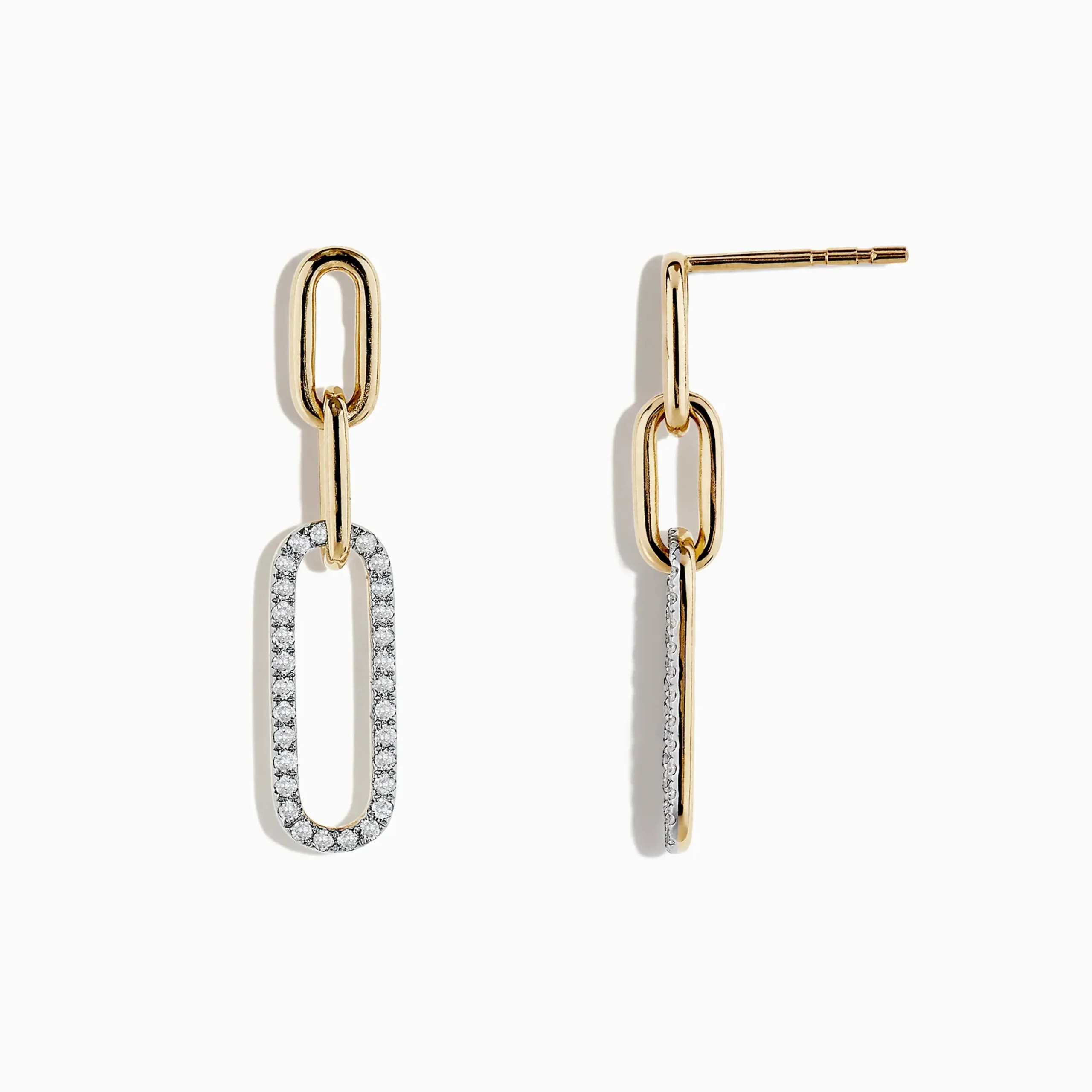 Effy D’Oro 14K Yellow Gold Diamond Paperclip Earrings, 0.29 TCW