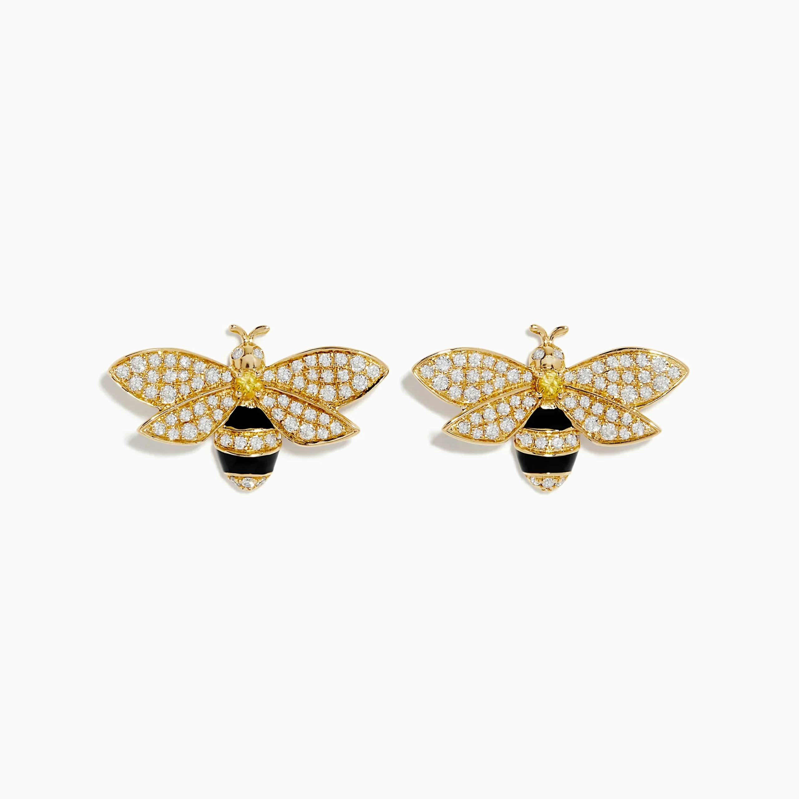 Effy Nature 14K Yellow Gold Diamond and Yellow Sapphire Bee Earrings