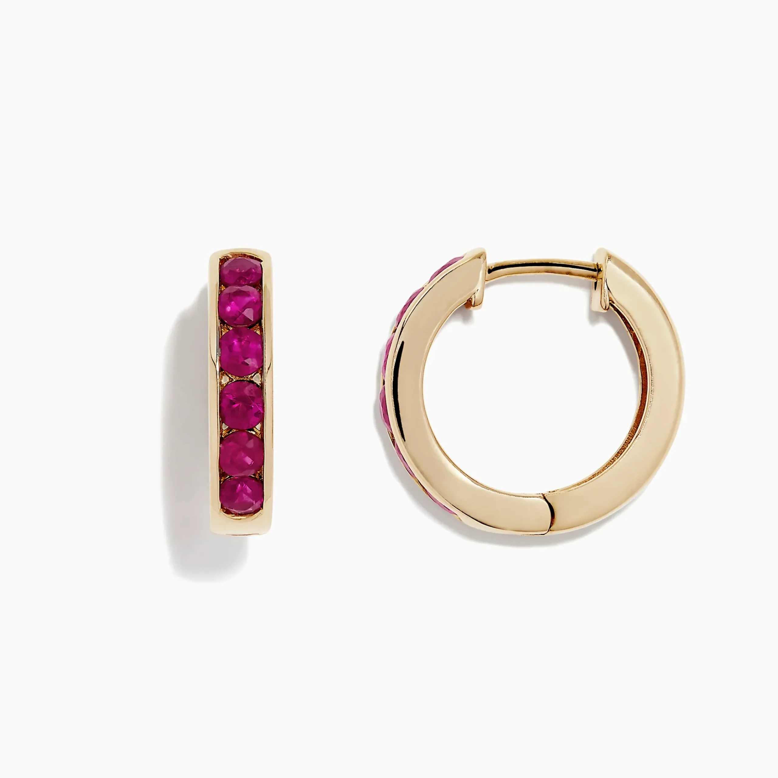 Metal:14K Gold Metal Color:YellowStone: Round Ruby 1.6Effy Ruby Royale 14K Yellow Gold Channel Set Ruby 5/8″ Hoop Earrin…