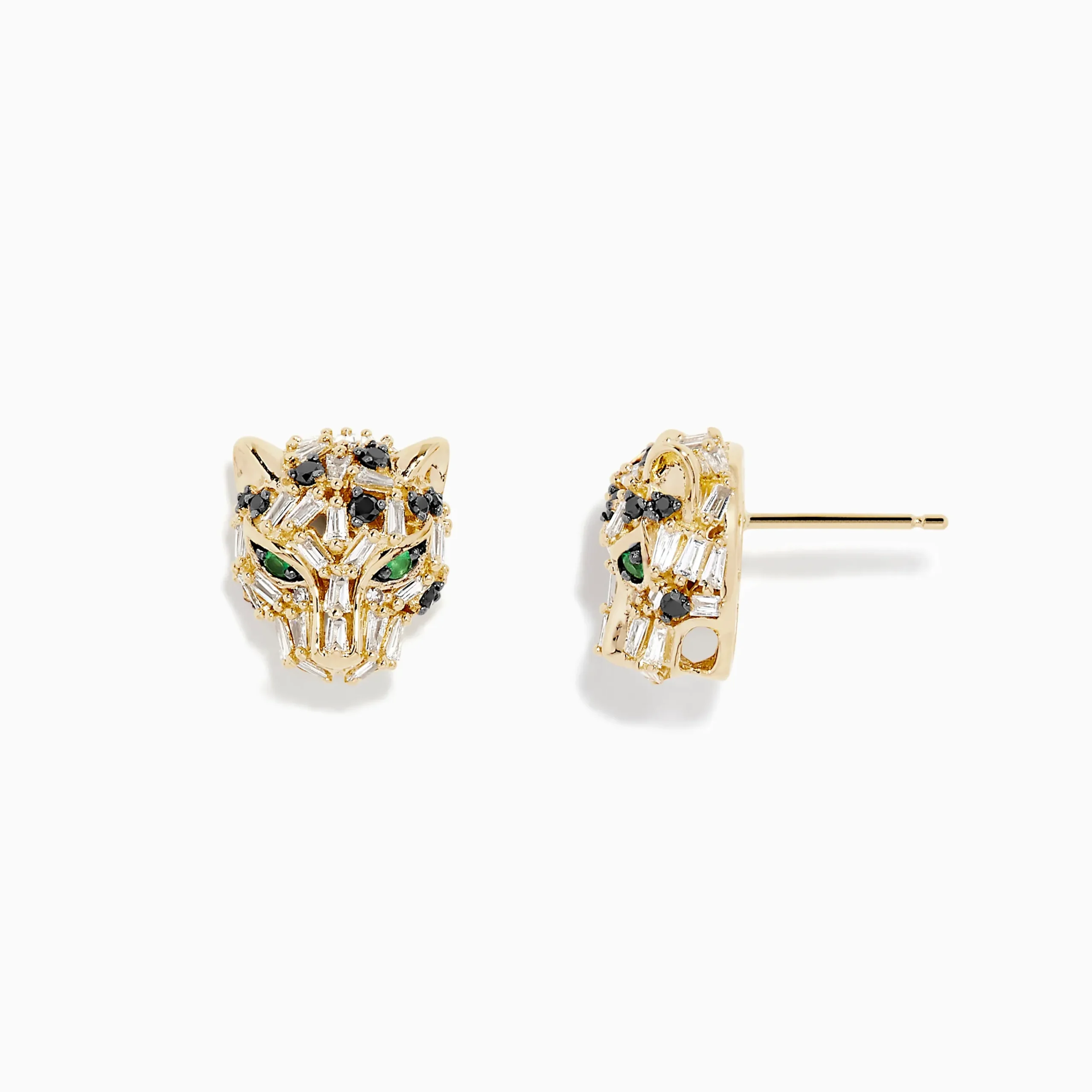Effy Signature 14K Yellow Gold Black and White Diamond Panther Earrings