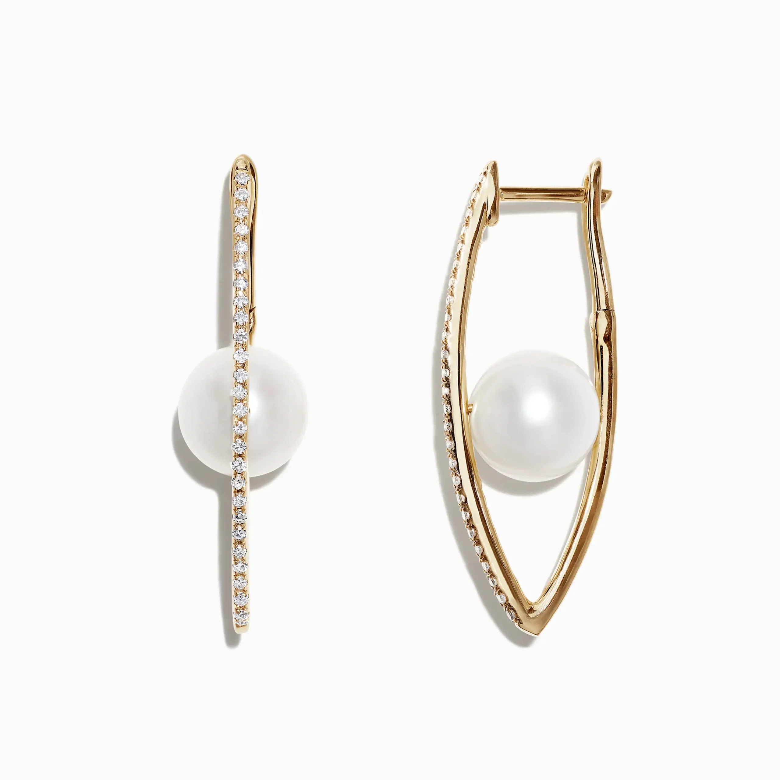 Effy 14K Gold Cultured Fresh Water Pearl & Diamond Hoop Earrings, 0.20 TCW