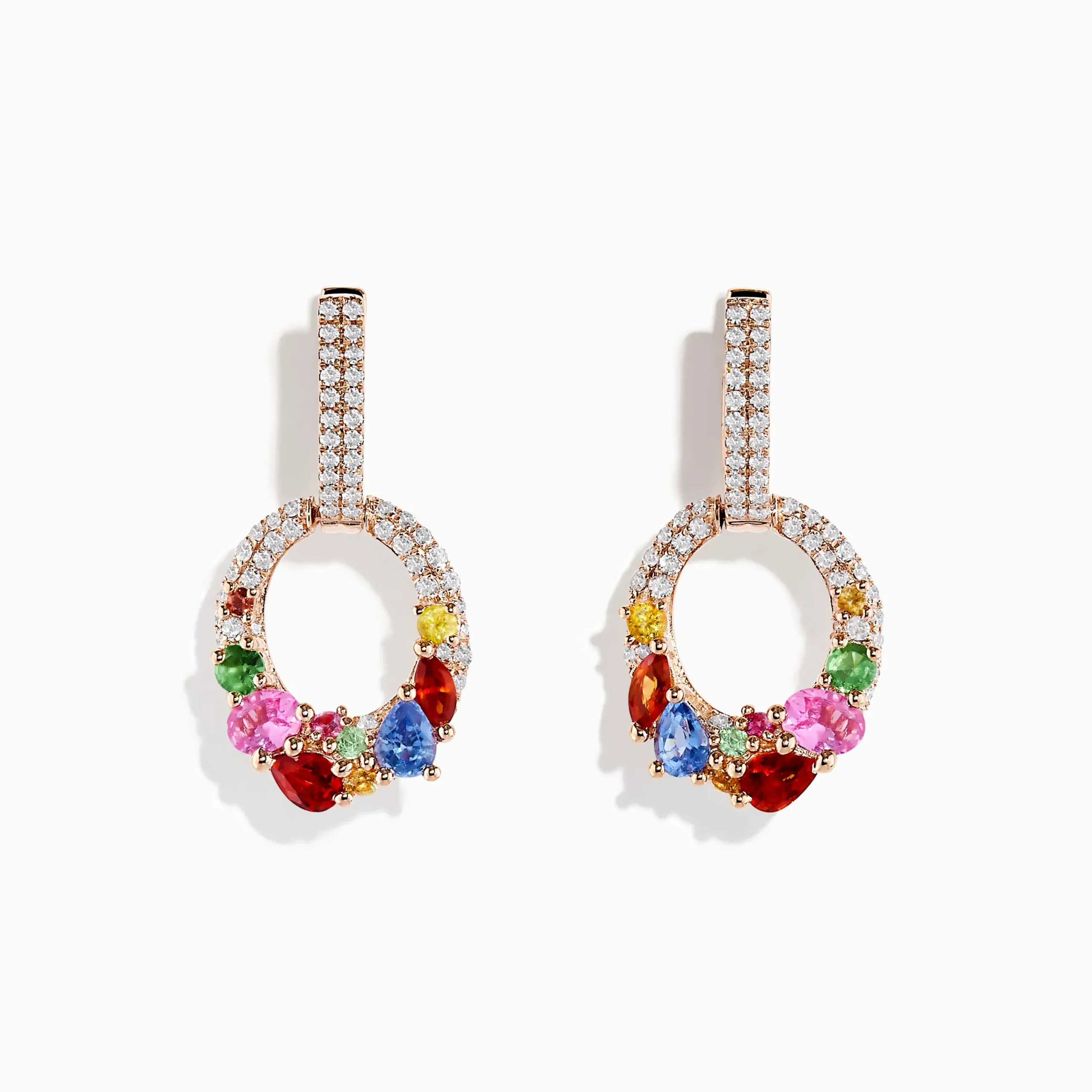 14K Rose Gold Multi Sapphire and Diamond Earrings