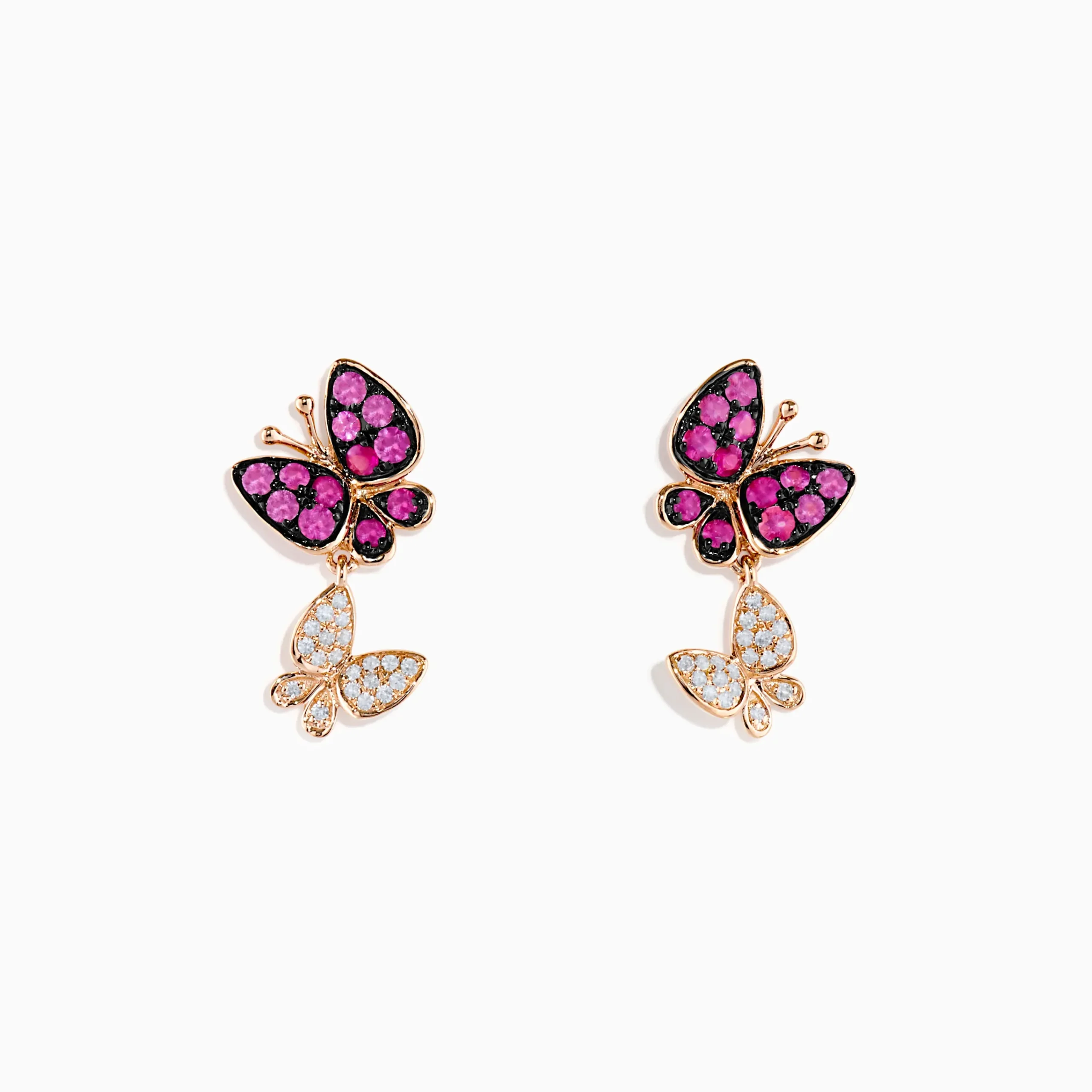 14K Rose Gold Pink Sapphire and Diamond Butterfly Earrings