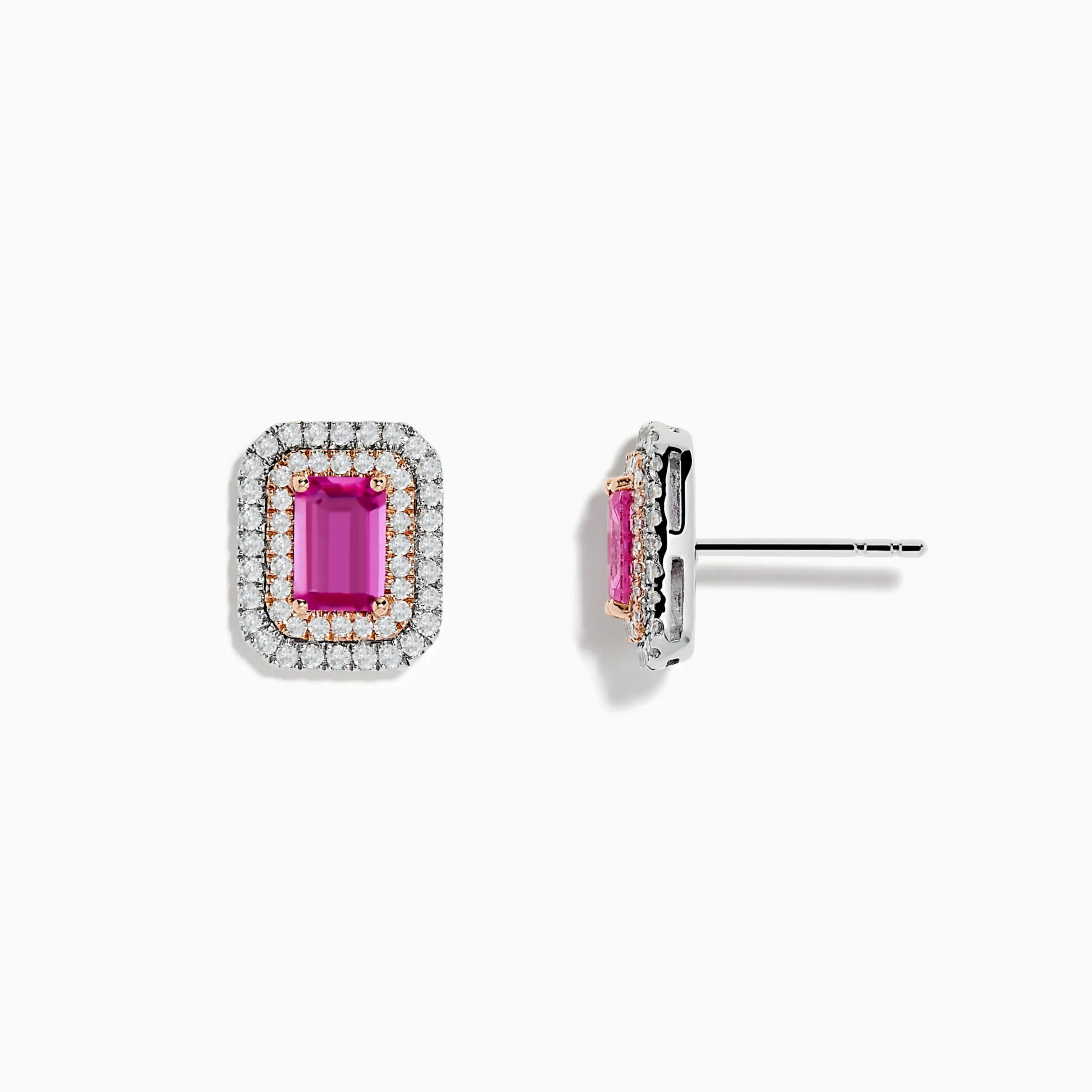 Effy 14K Two Tone Gold Pink Sapphire and Diamond Earrings
