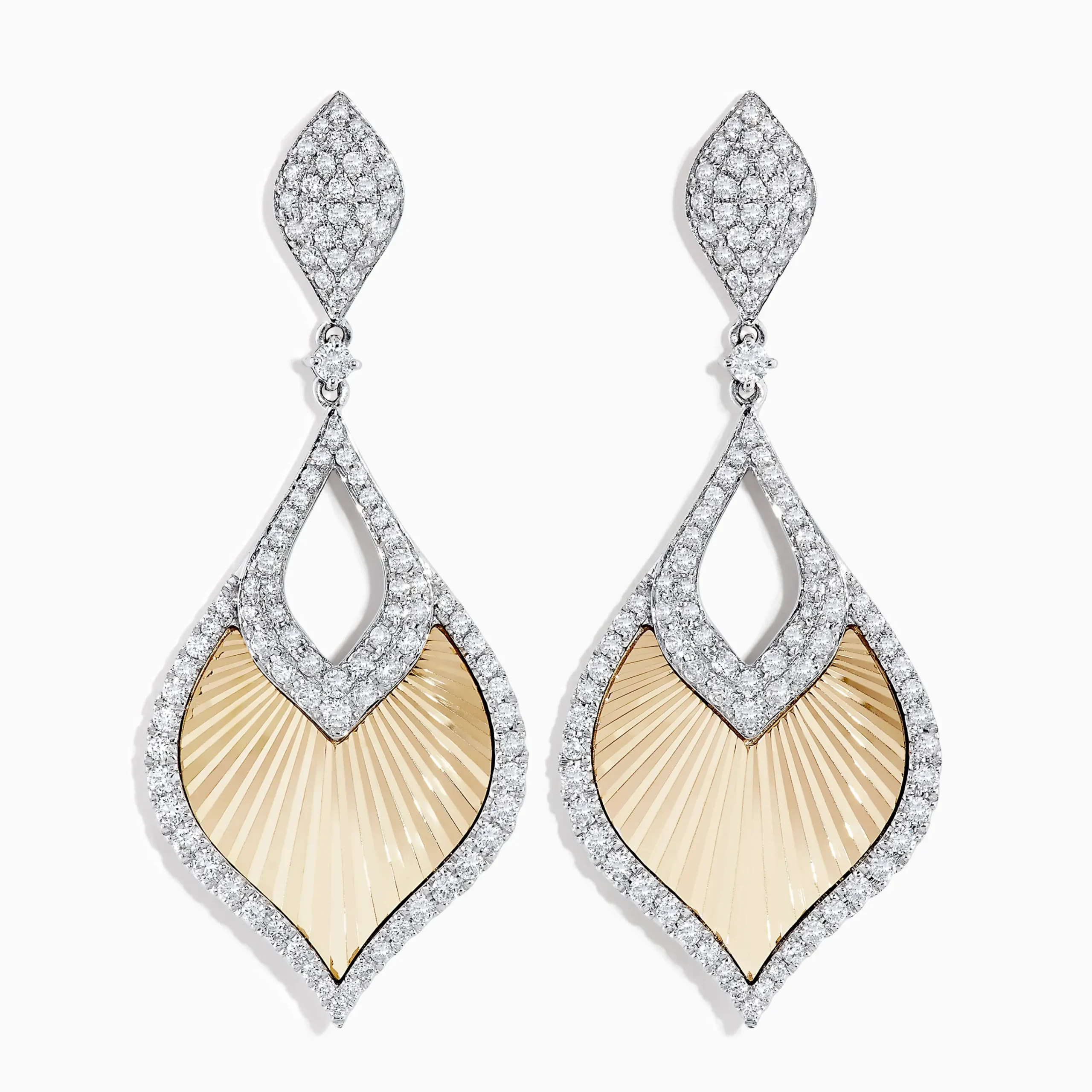 Effy 14K Two-Tone Textured Gold Diamond Statement Drop Earrings