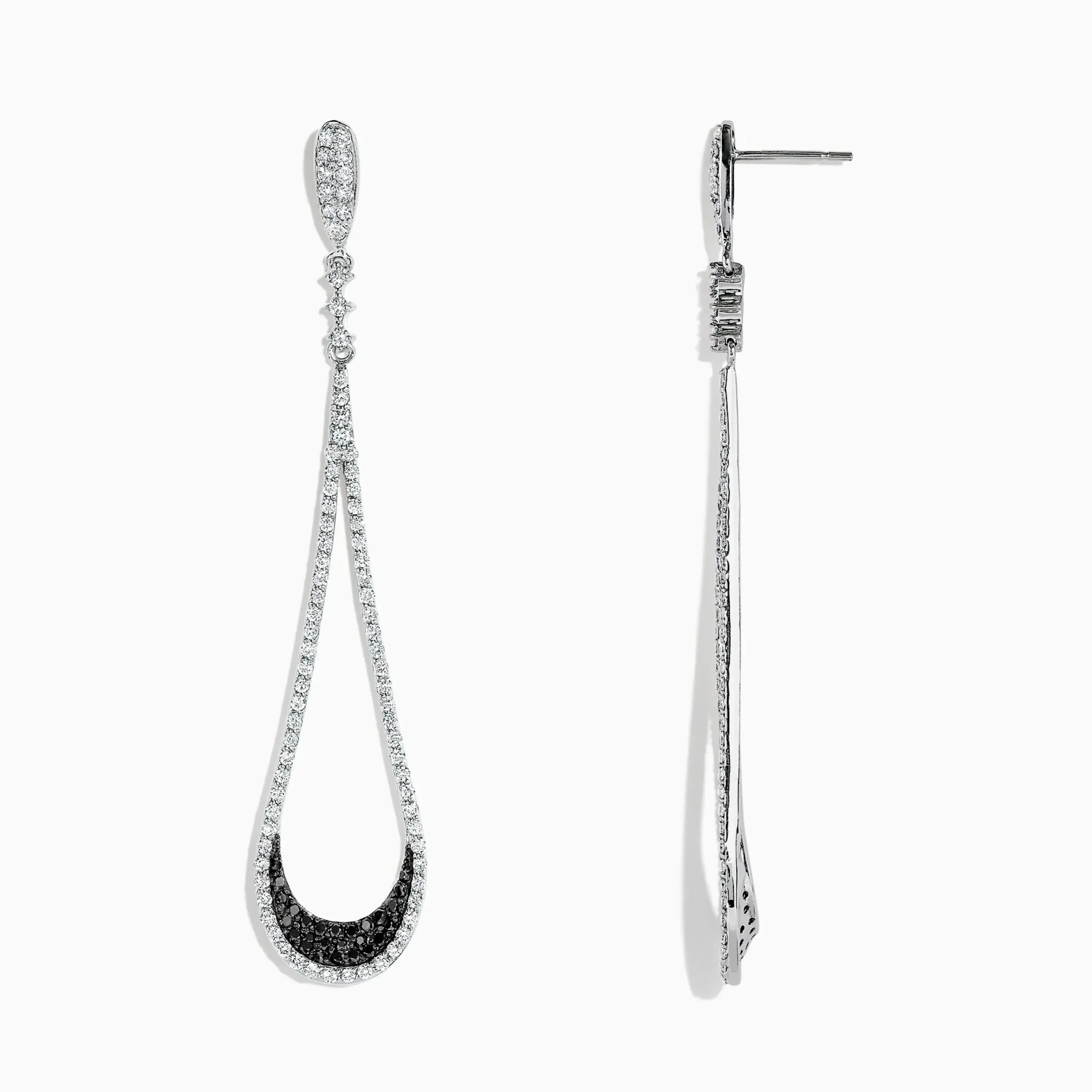 Effy 14K White Gold Black and White Diamond Drop Earrings, 1.70 TCW