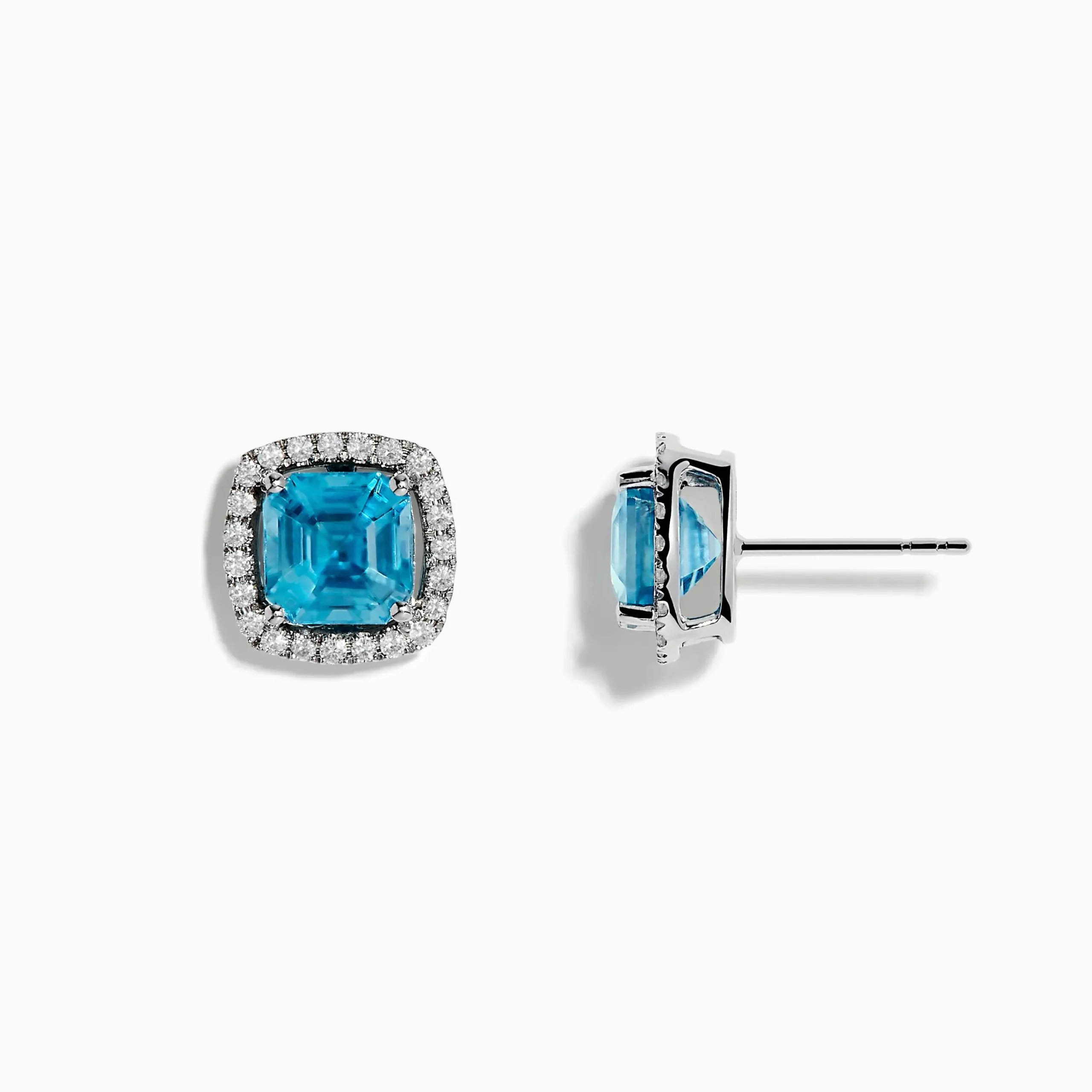 14K White Gold Blue Zircon and Diamond Stud Earrings
