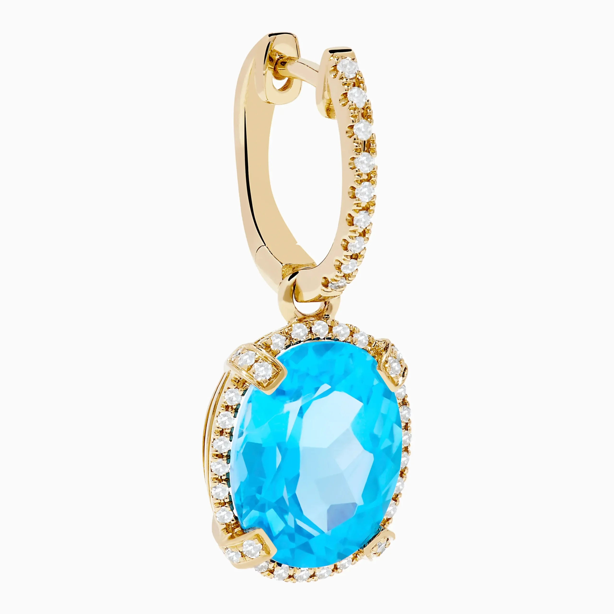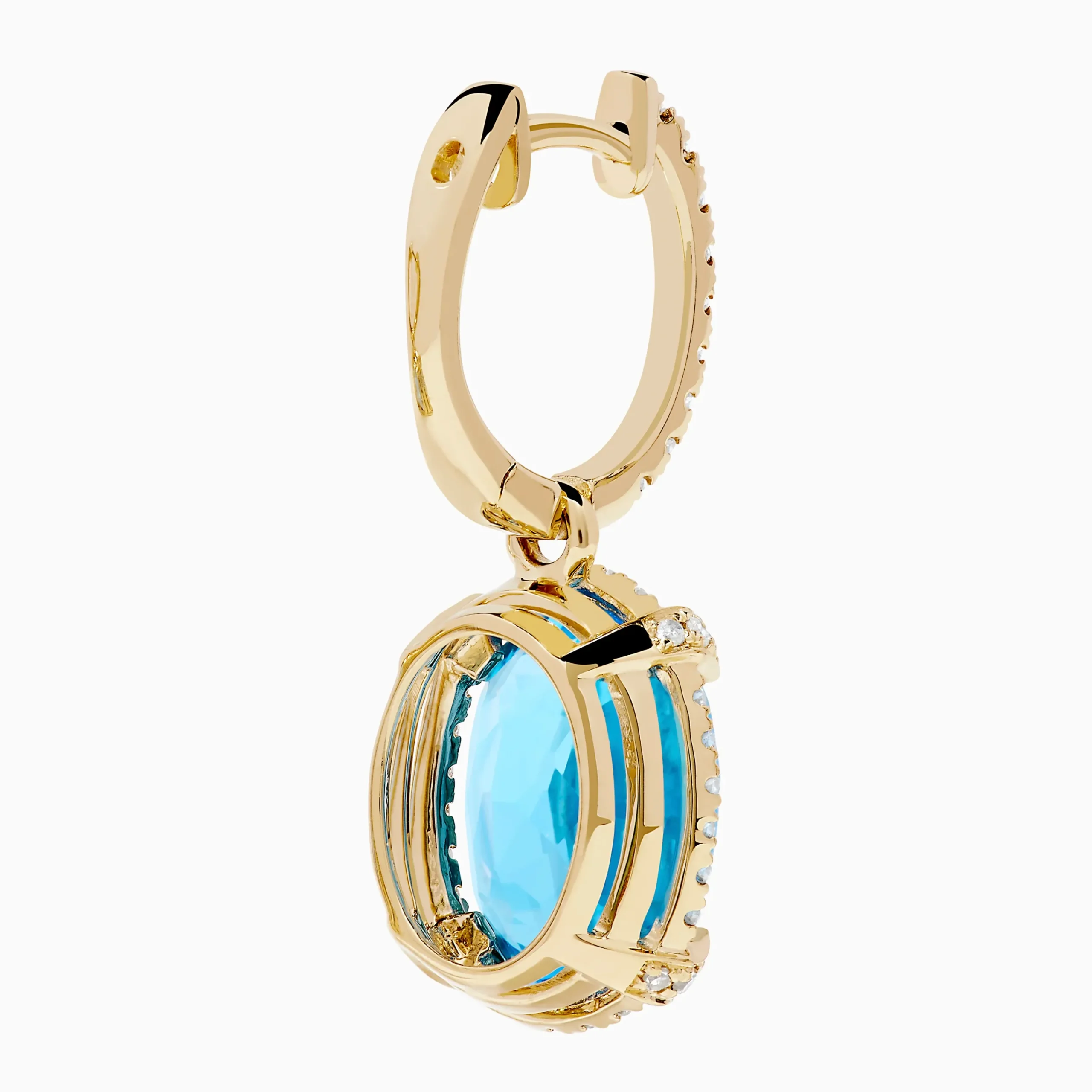 14K Yellow Gold Blue Topaz and Diamond Drop Earrings