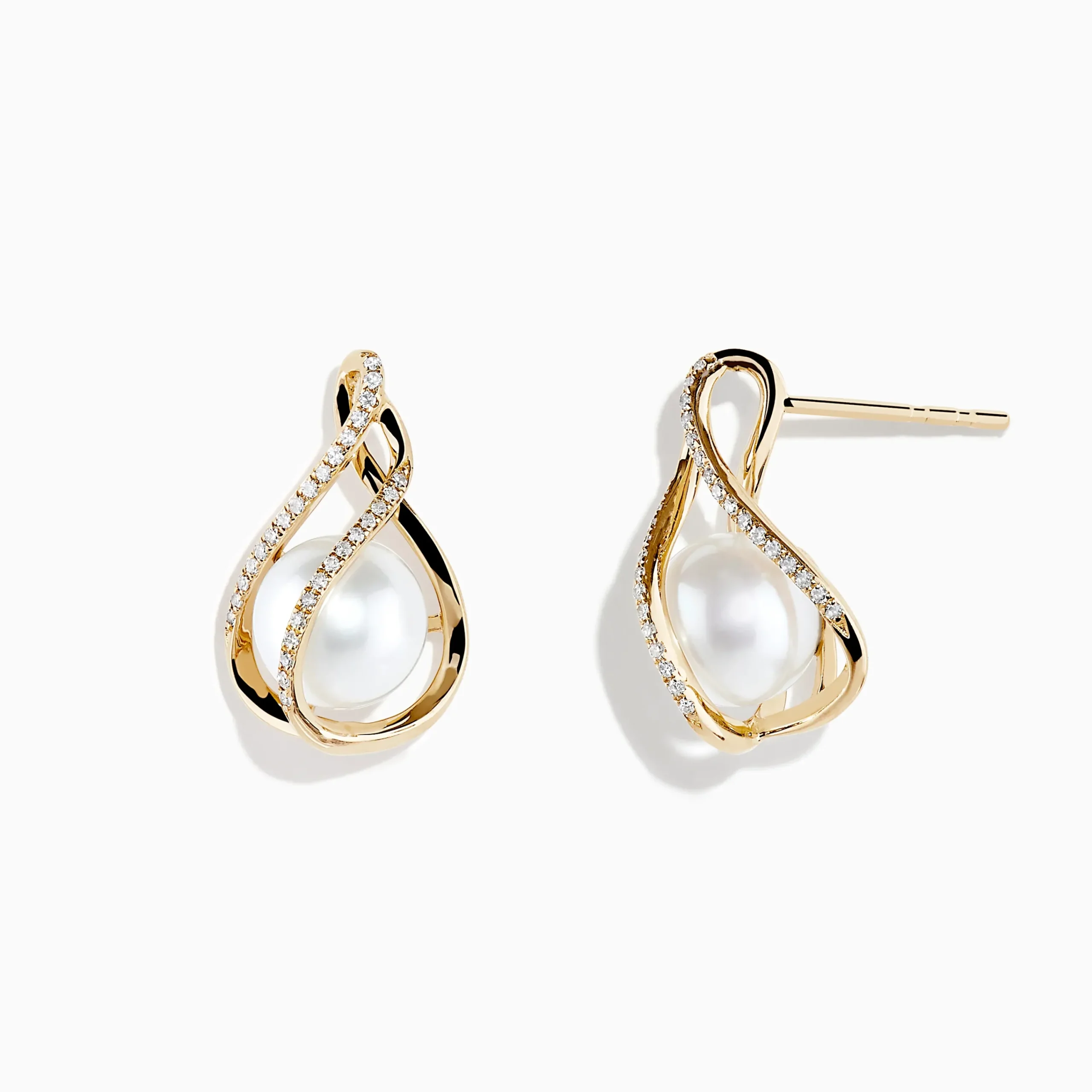 14K Yellow Gold Diamond Fresh Water Pearl Drop Earrings