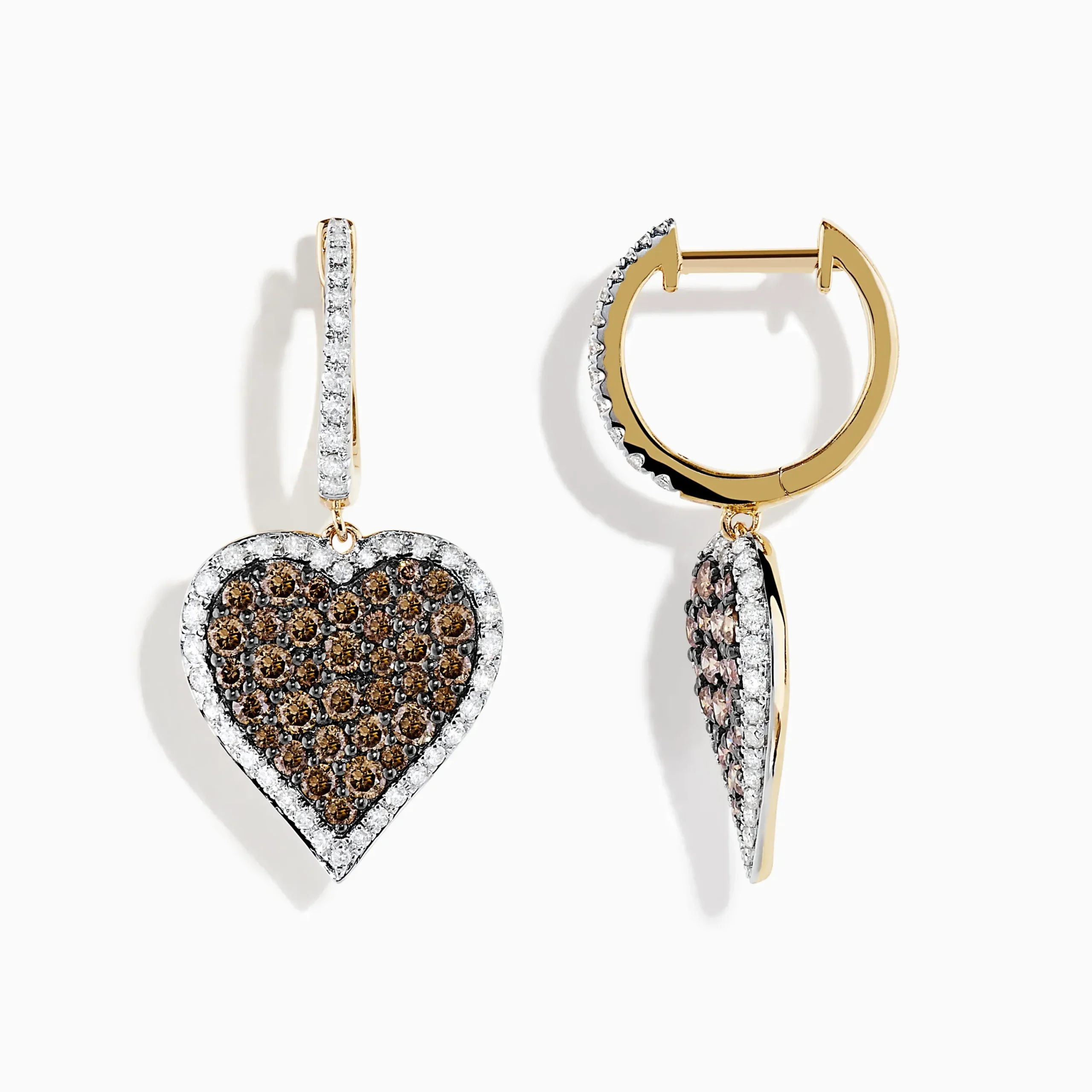 Effy Espresso 14K Yellow Gold Espresso and White Diamond Heart Earrings