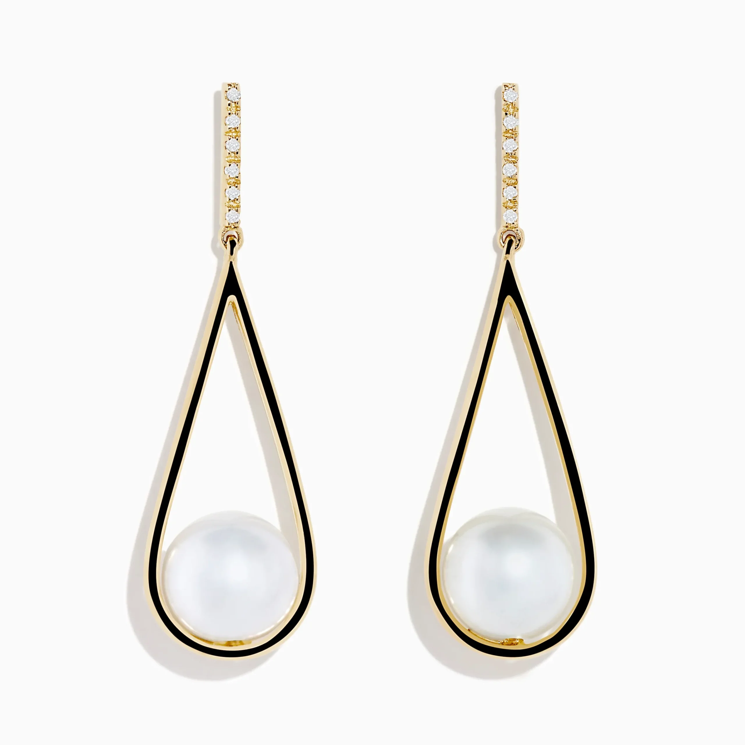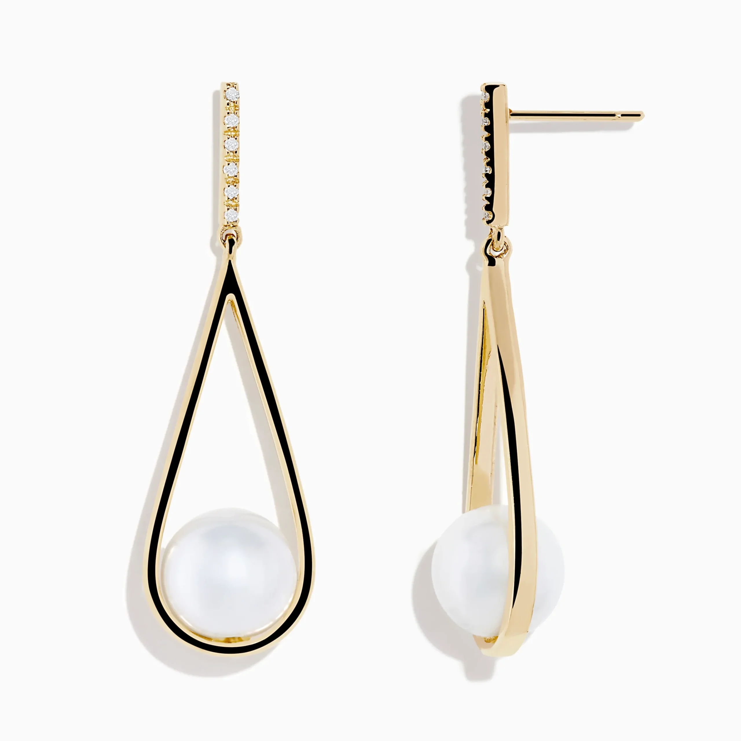 14K Yellow Gold Fresh Water Pearl and Diamond Drop Earrings