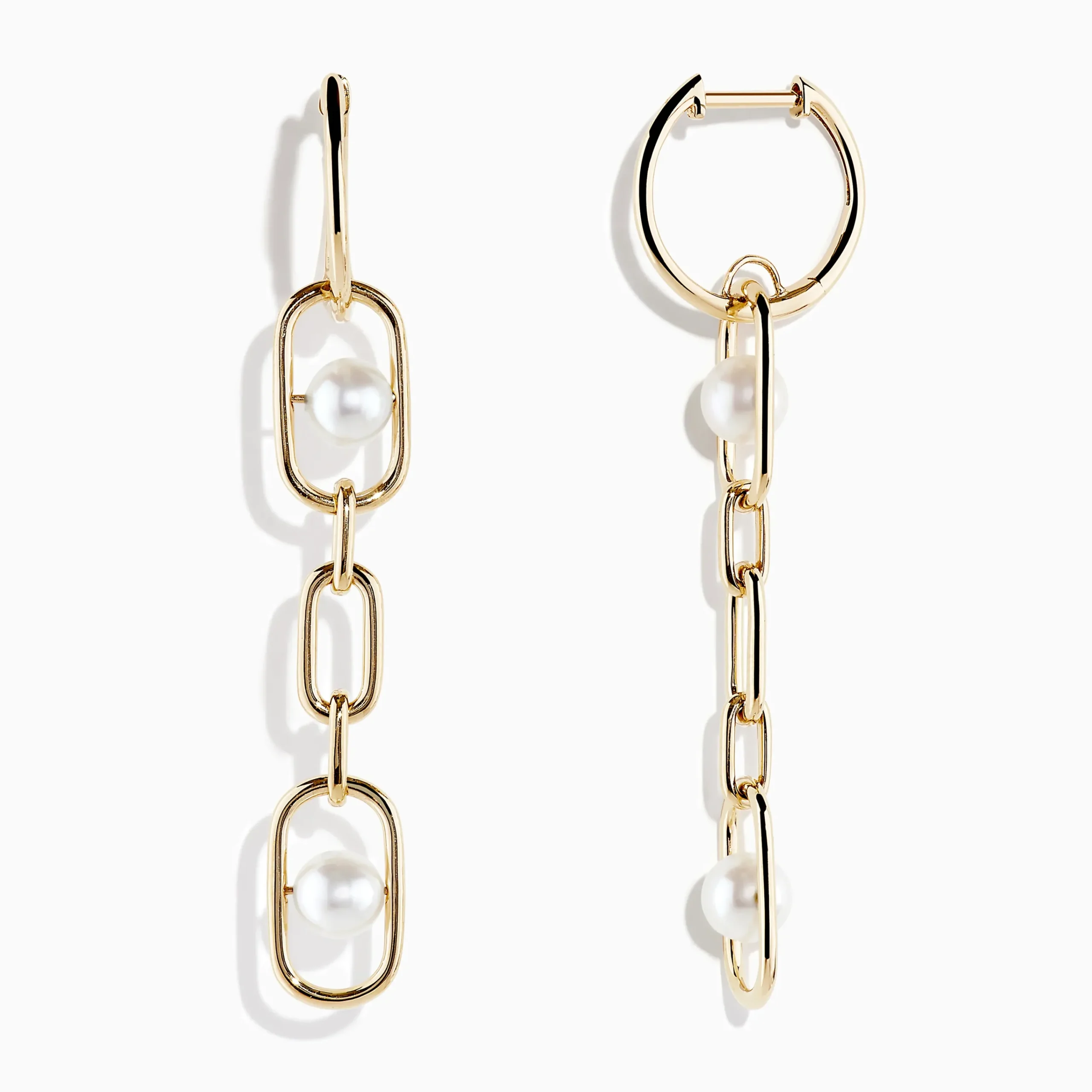 14K Yellow Gold Fresh Water Pearl Chain Link Earrings