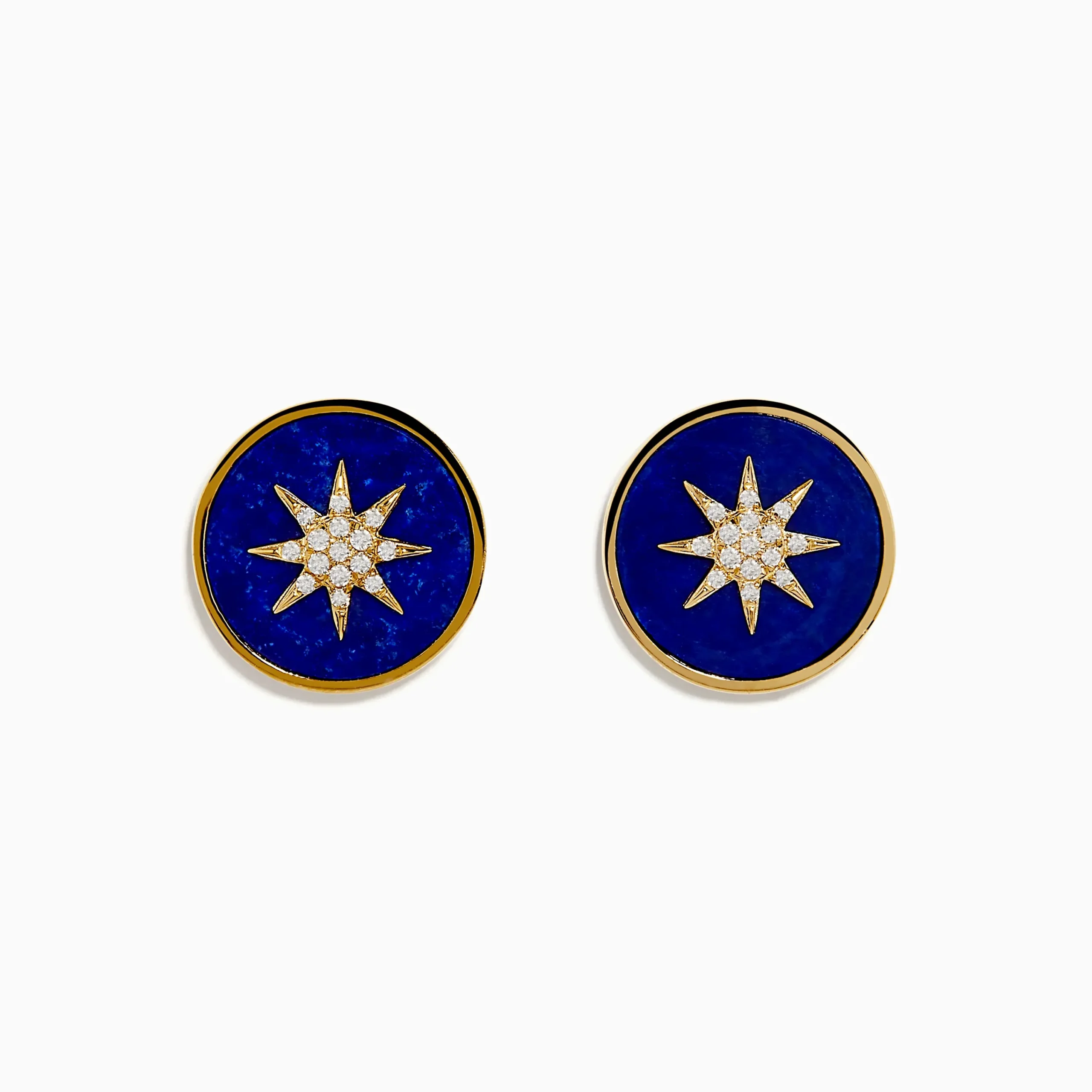 14K Yellow Gold Lapis and Diamond Star Compass Earrings