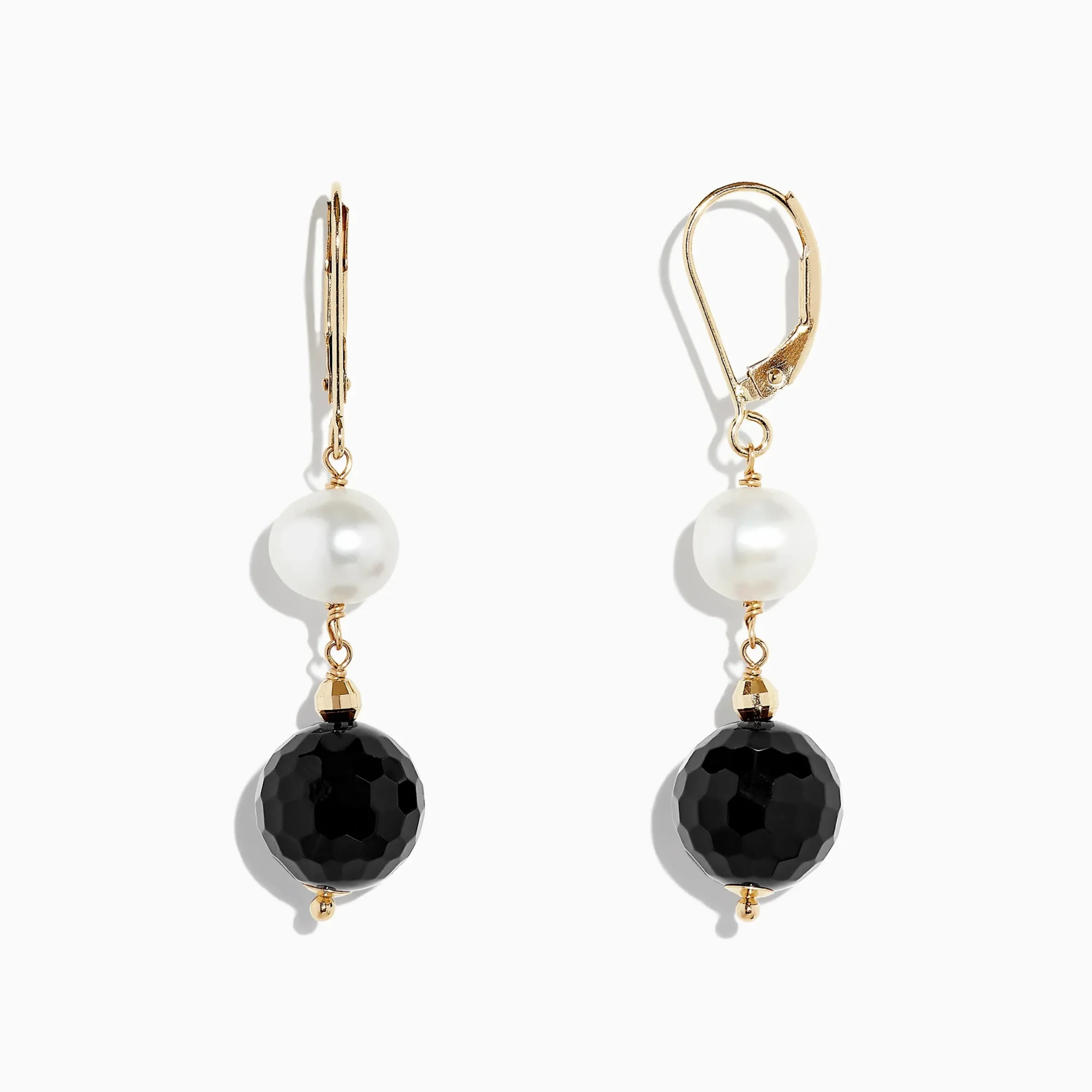 Metal:14K Gold Metal Color:YellowStone: Round PearlEffy 14K Yellow Gold Onyx and Cultured Fresh Water Pearl Drop Earring…