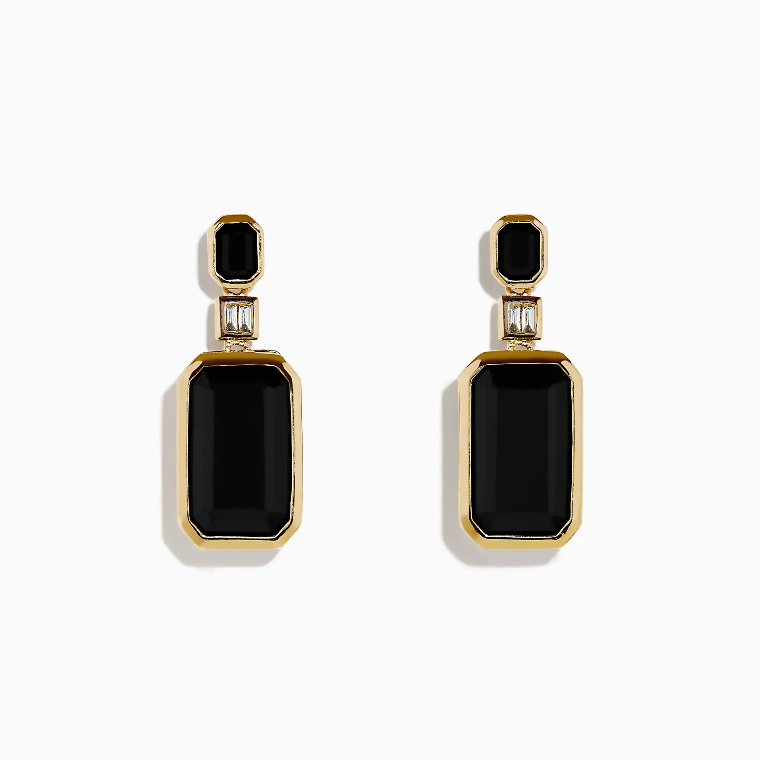 14K Yellow Gold Onyx and Diamond Bezel Drop Earrings