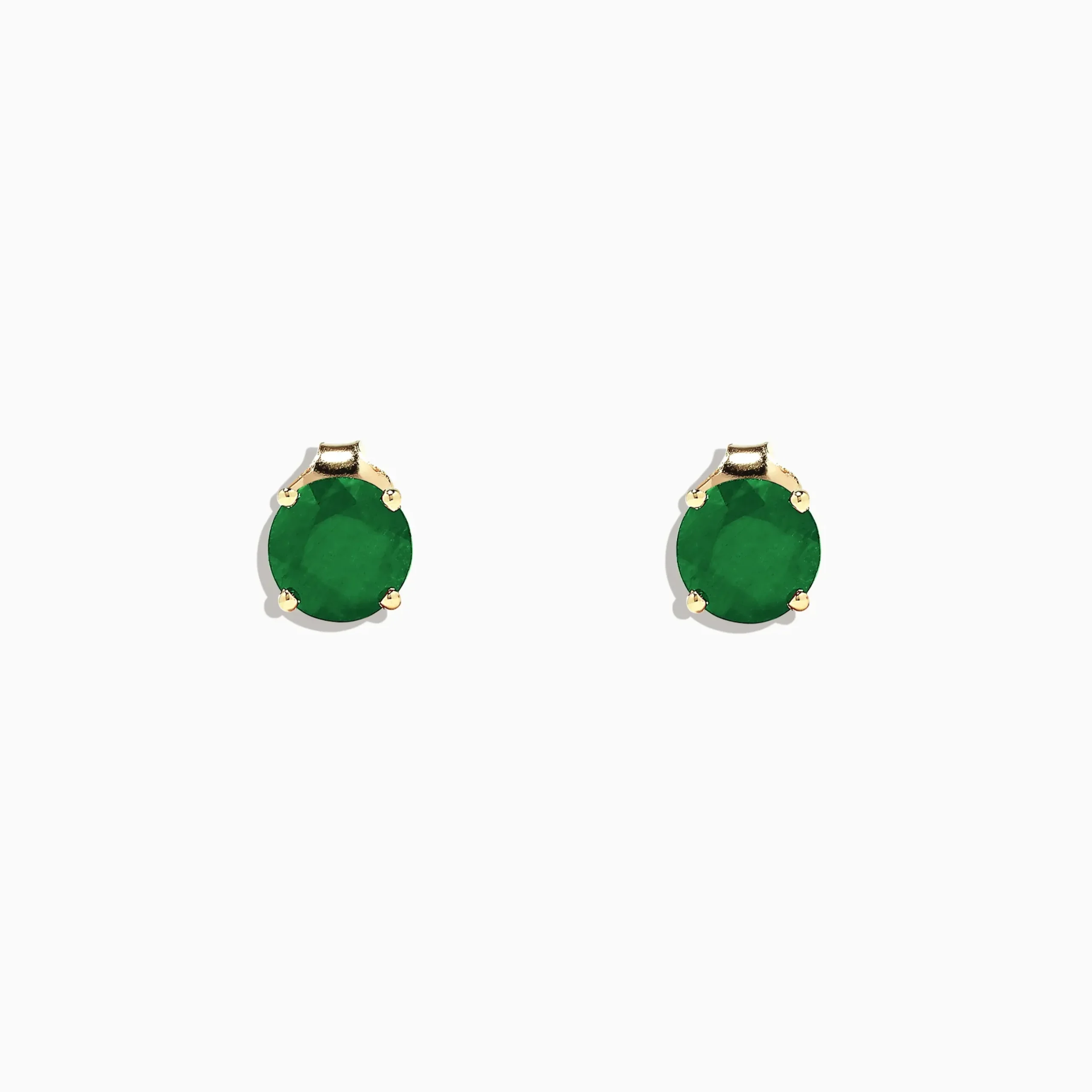 Effy 14K Yellow Gold Solitaire Round Emerald Stud Earrings, 1.62 TCW