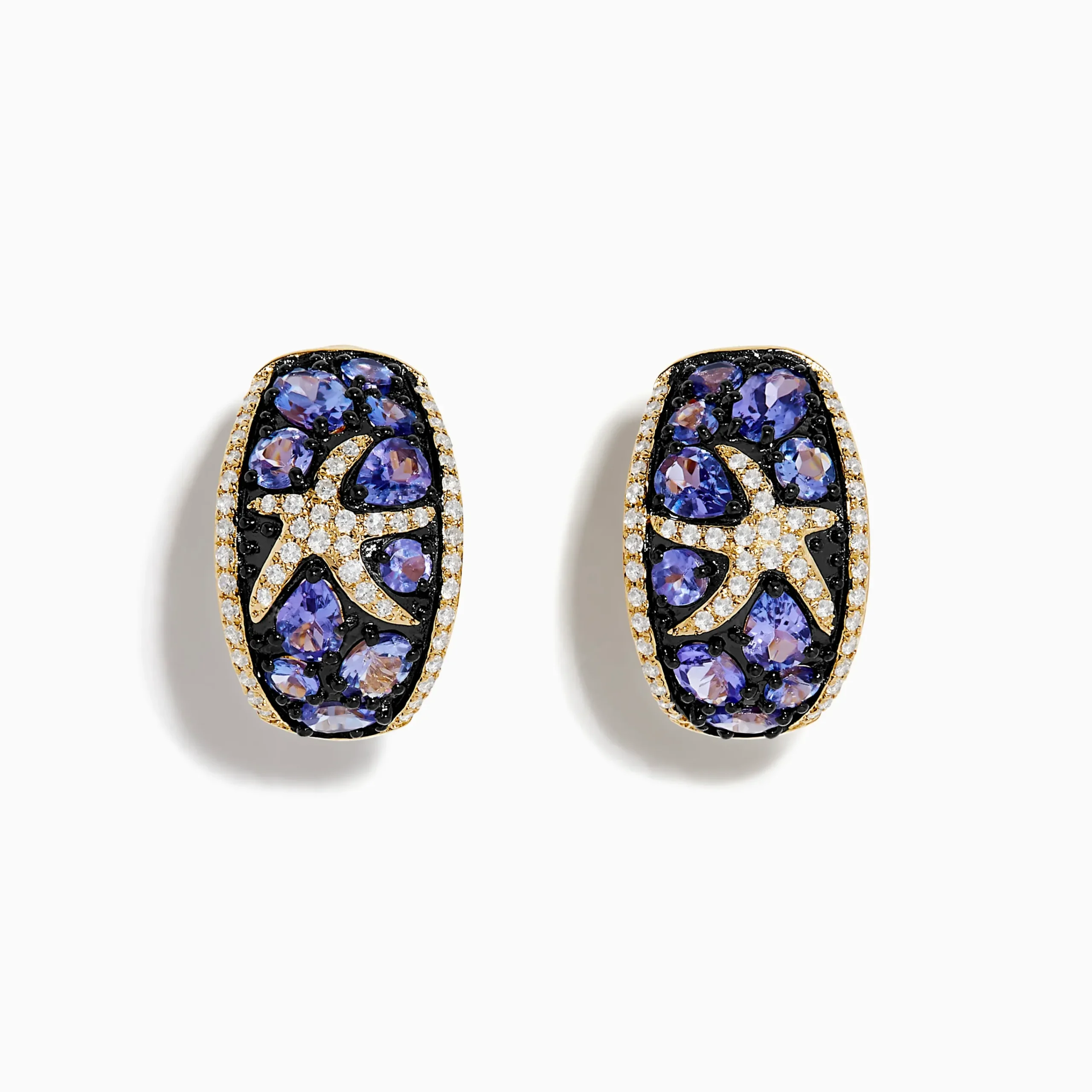 14K Yellow Gold Tanzanite & Diamond Starfish Earrings