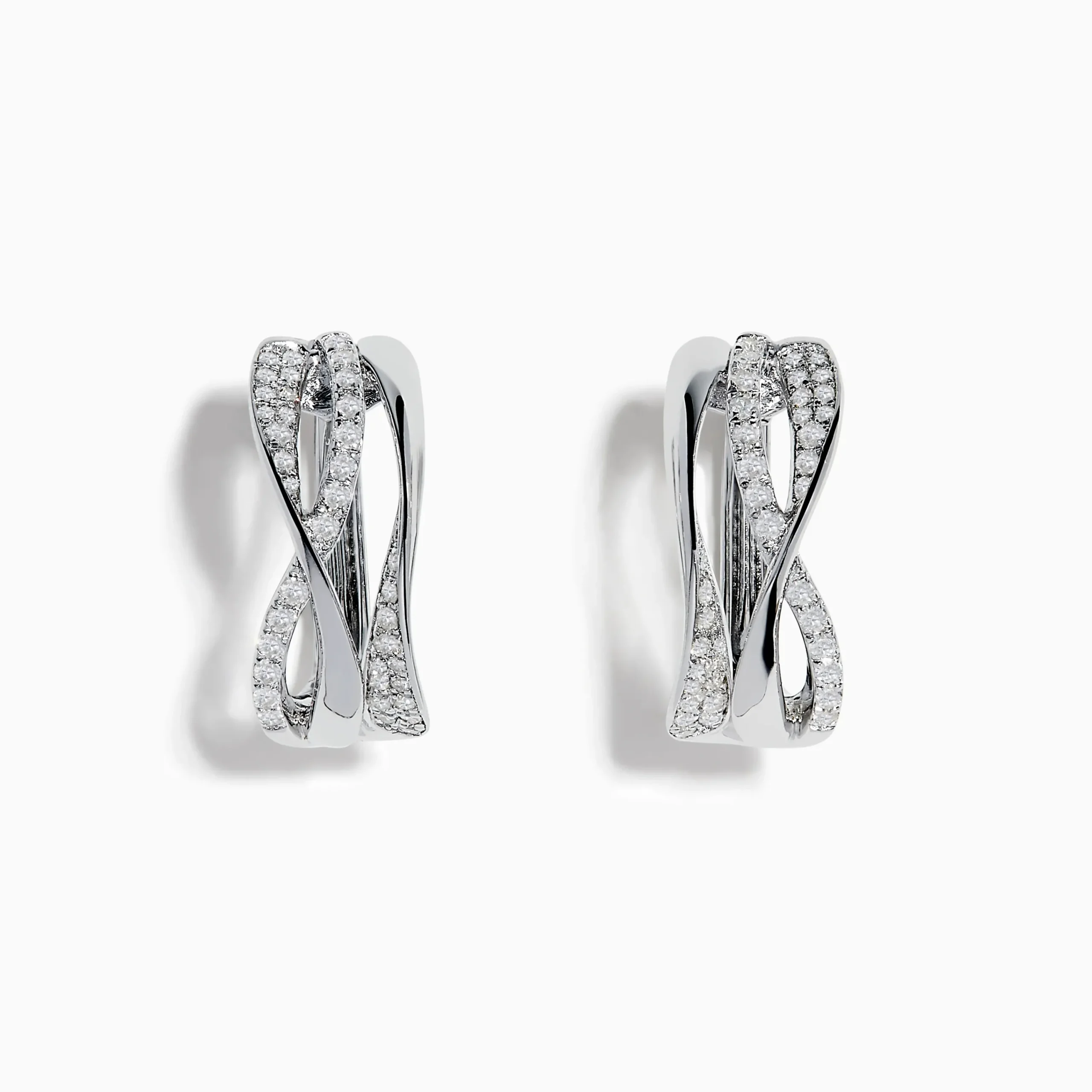 Metal:Sterling Silver Metal Color:WhiteStone: Round Diamond 0.37925 Silver Diamond Crossover Hoop Earrings
