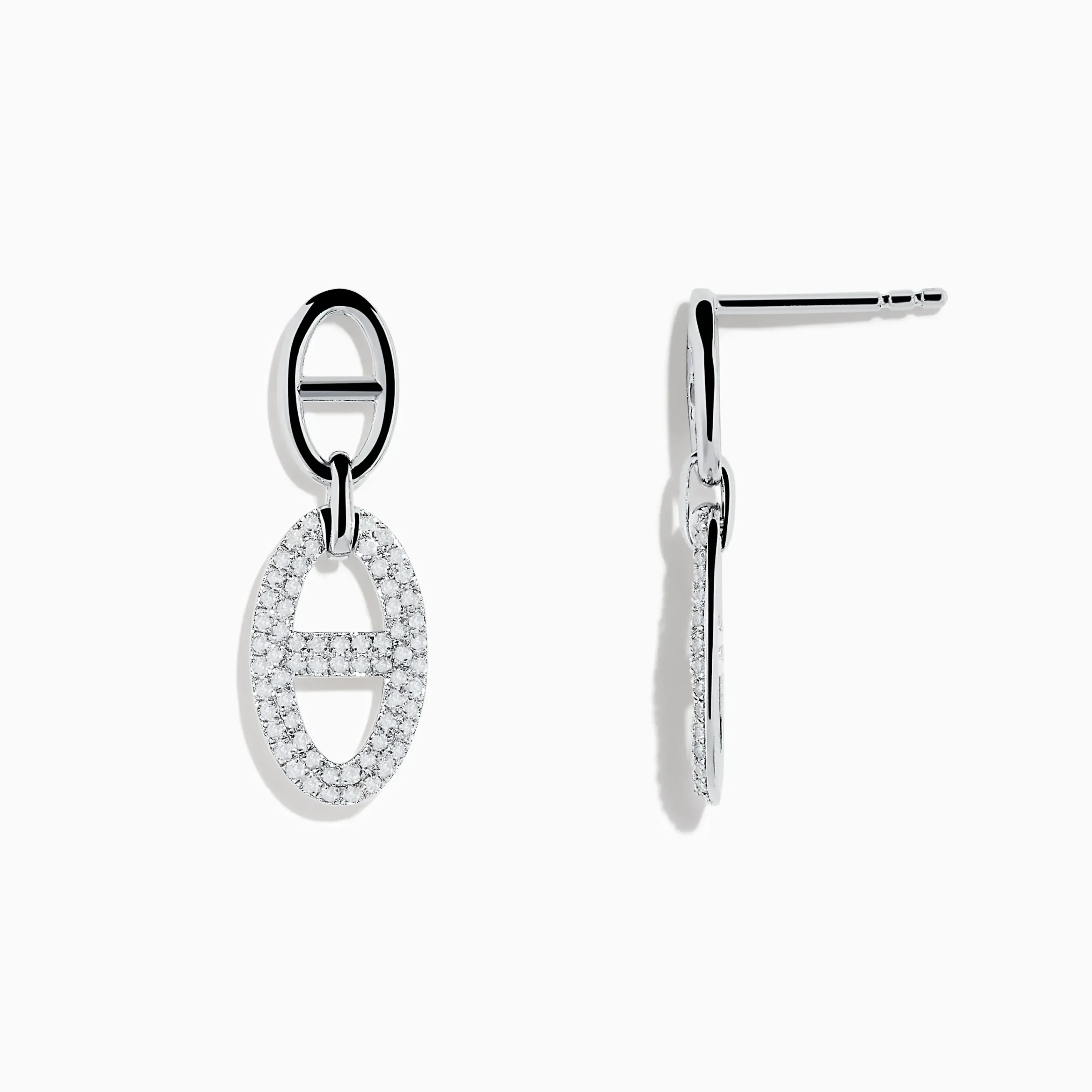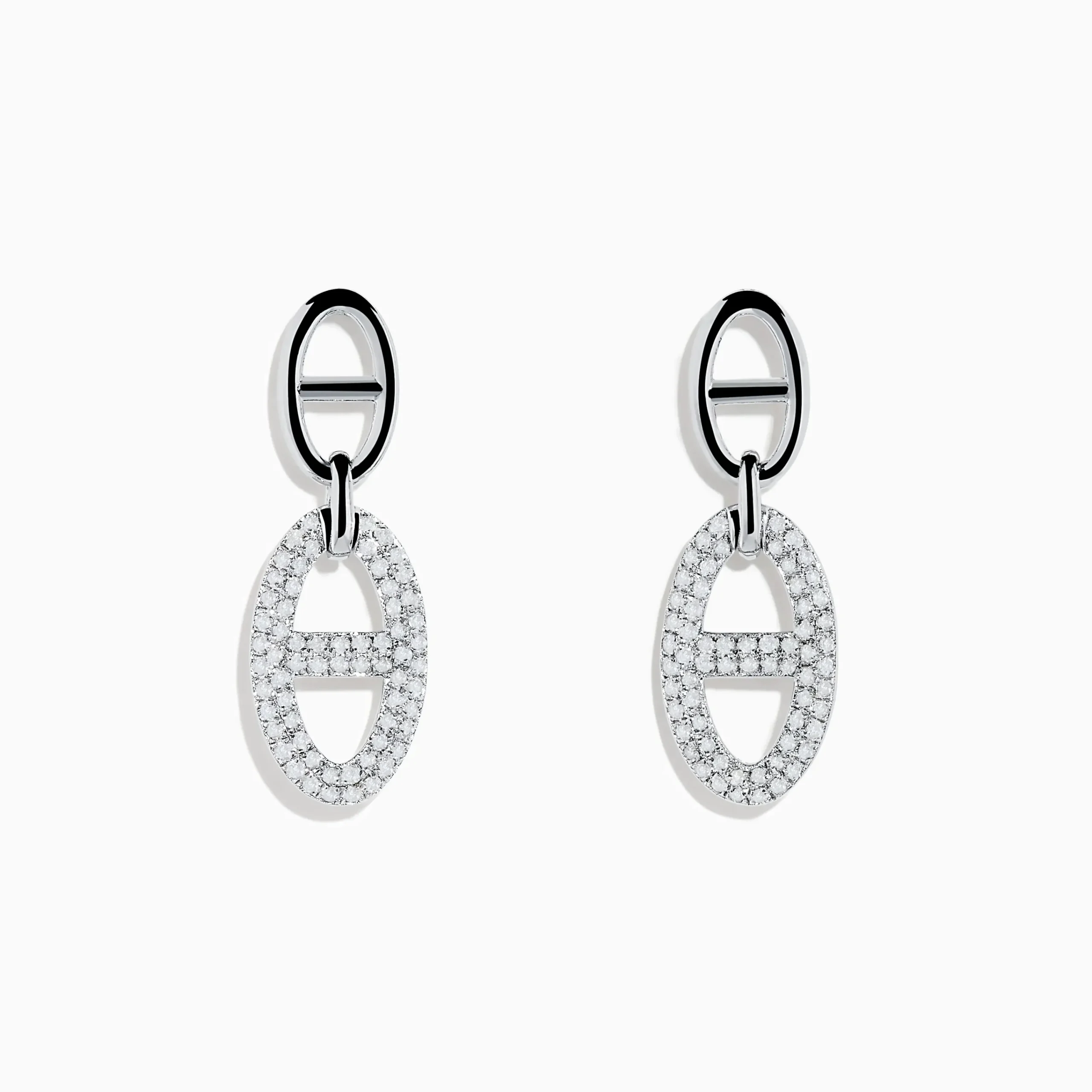 Metal:Sterling Silver Metal Color:WhiteStone: Round Diamond 0.36925 Sterling Silver Diamond Interlocking Link Earrings