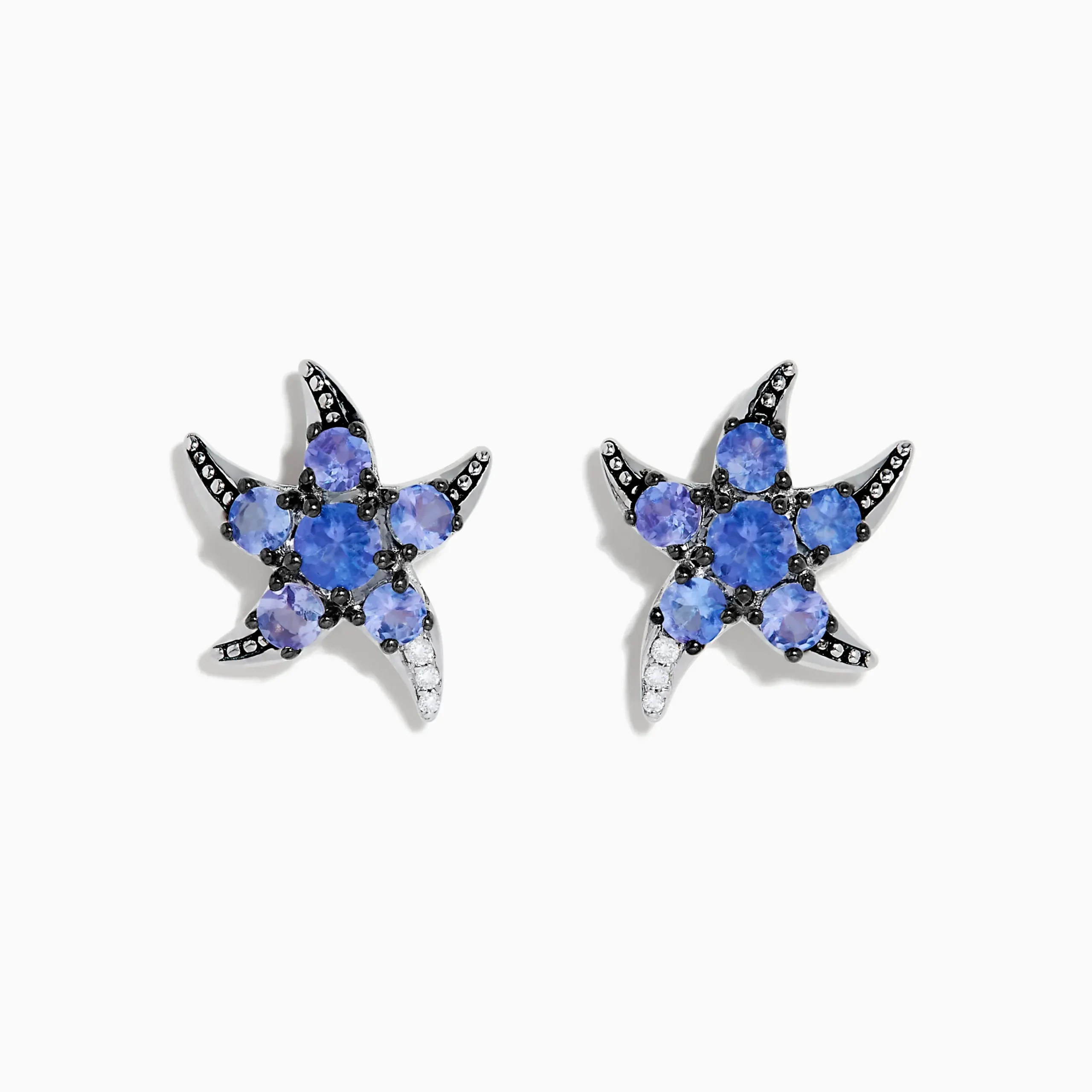 925 Sterling Silver Tanzanite and Diamond Starfish Earrings