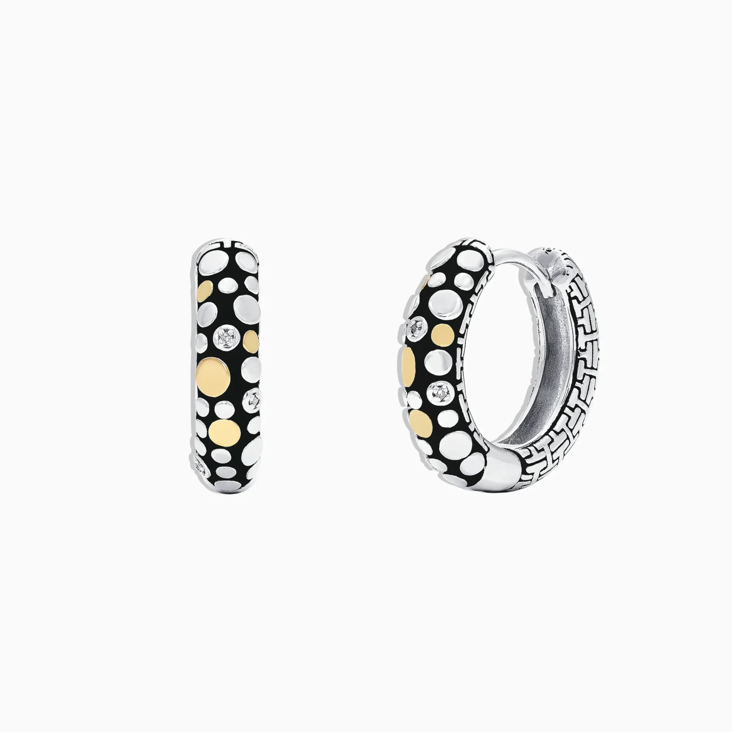 Effy 925 Sterling Silver & 18K Yellow Gold Diamond Hoop Earrings, 0.02 TCW