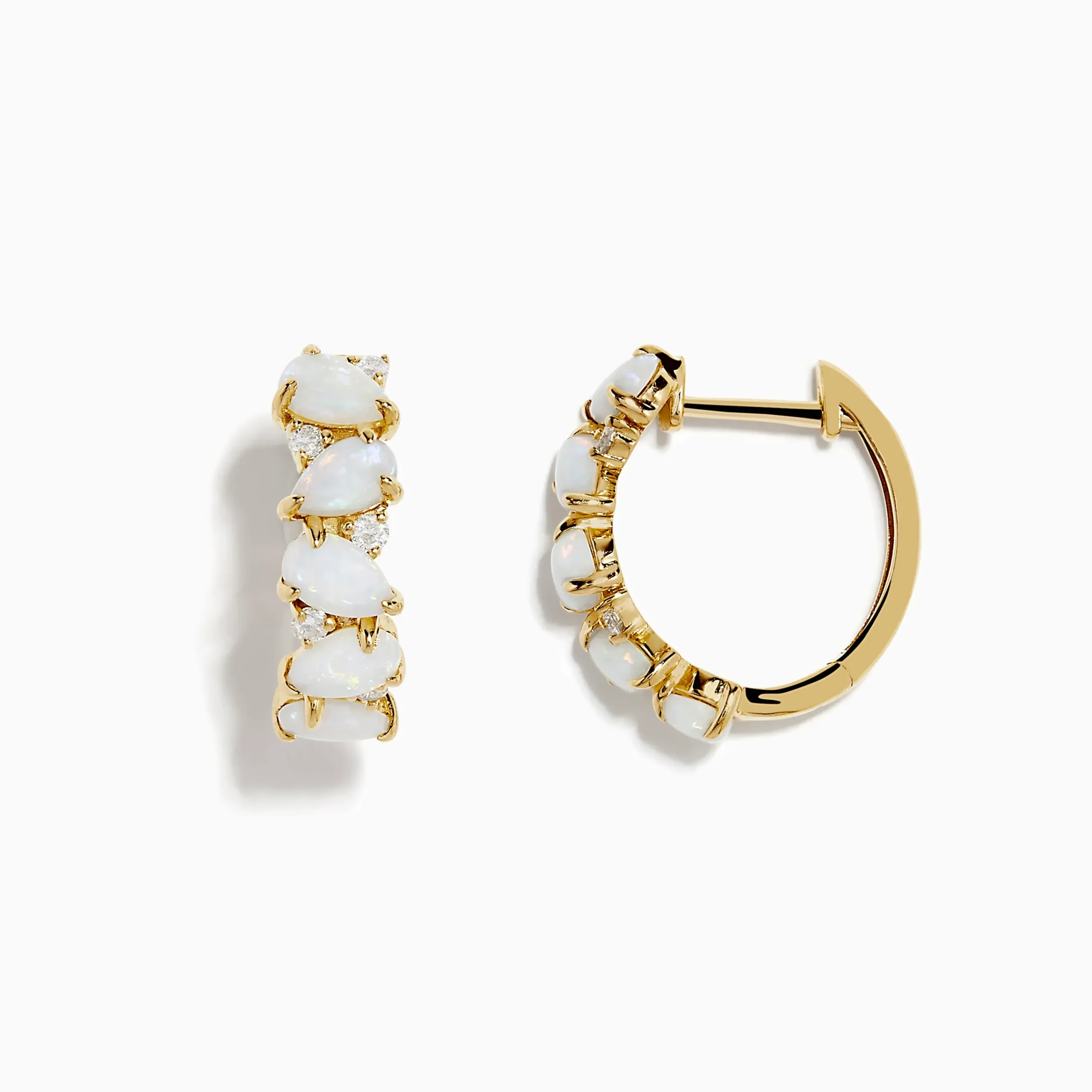 Effy Aurora 14K Yellow Gold Opal and Diamond Hoop Earrings