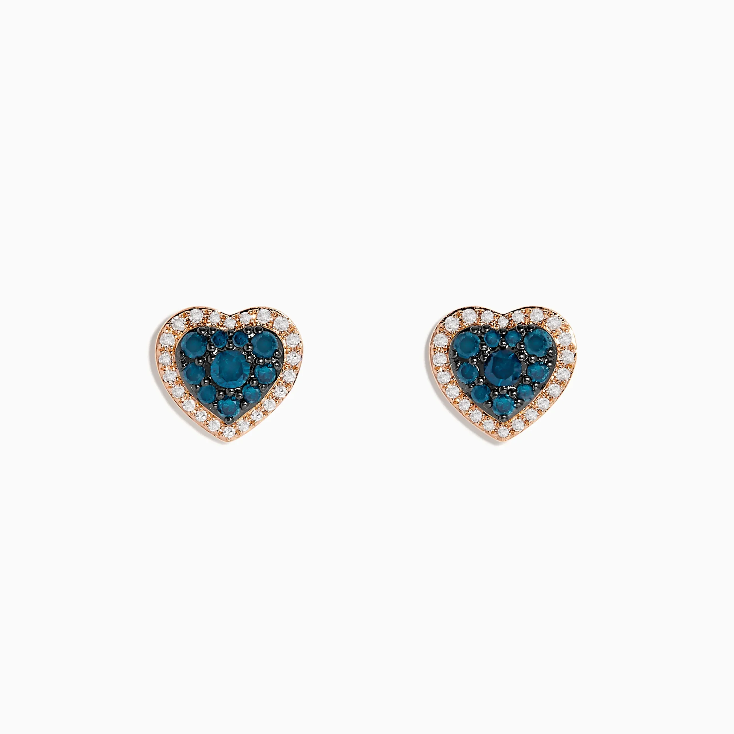 Effy Bella Bleu 14K Rose Gold Blue and White Diamond Heart Earrings