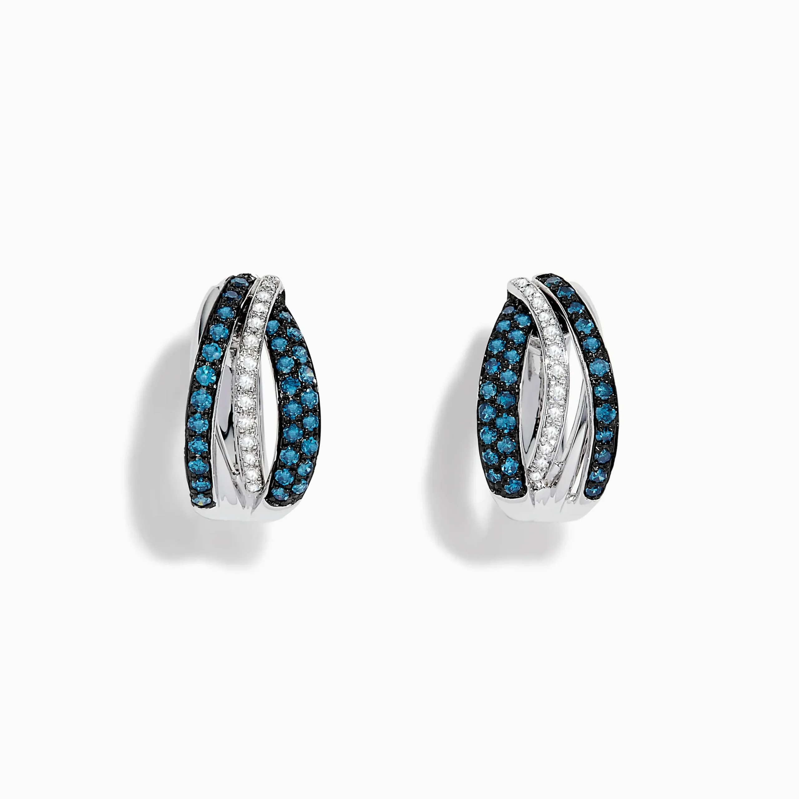 Effy Bella Bleu 14K White Gold White and Blue Diamond Hoop Earrings