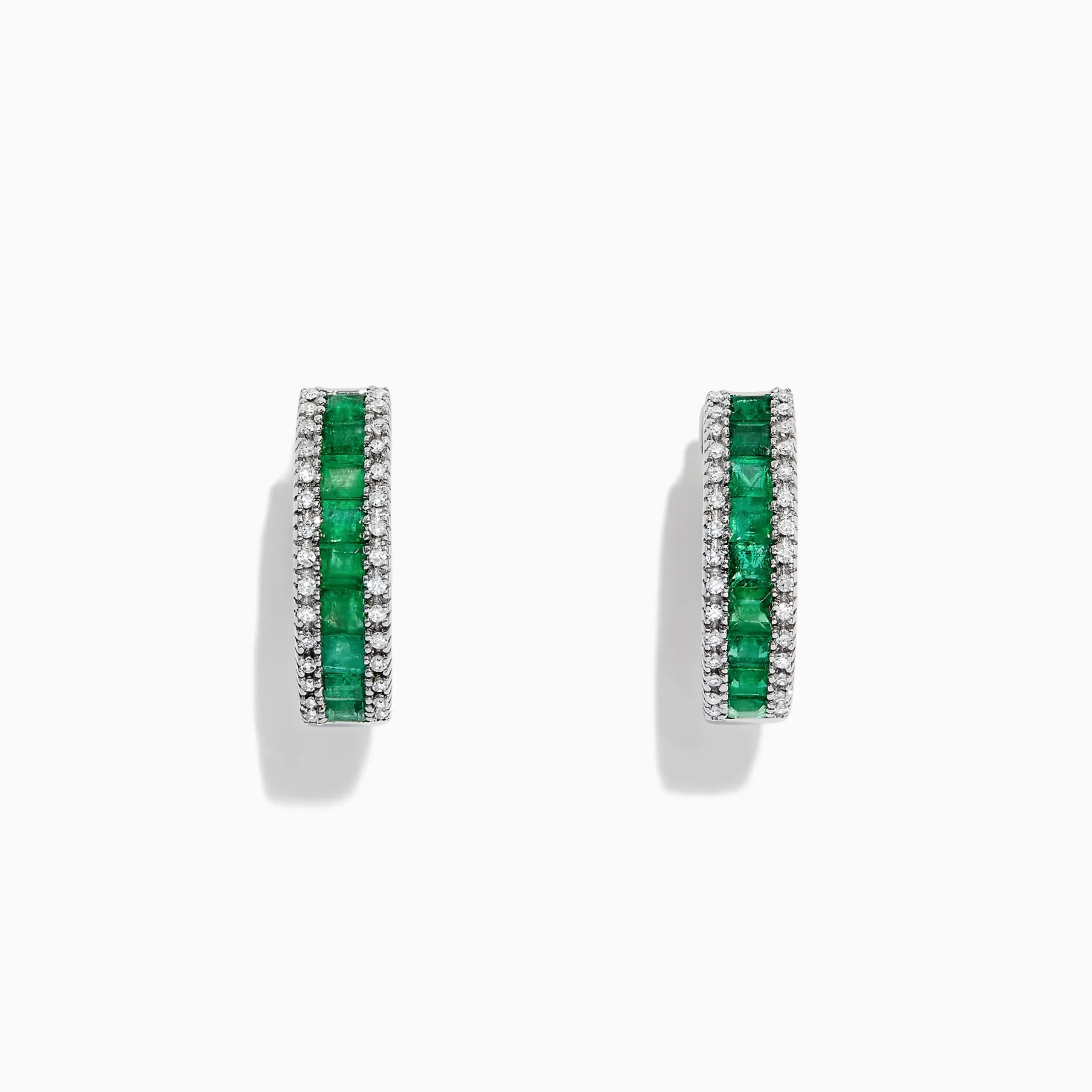 Effy Brasilica 14K White Gold Emerald and Diamond Hoop Earrings, 2.04 TCW