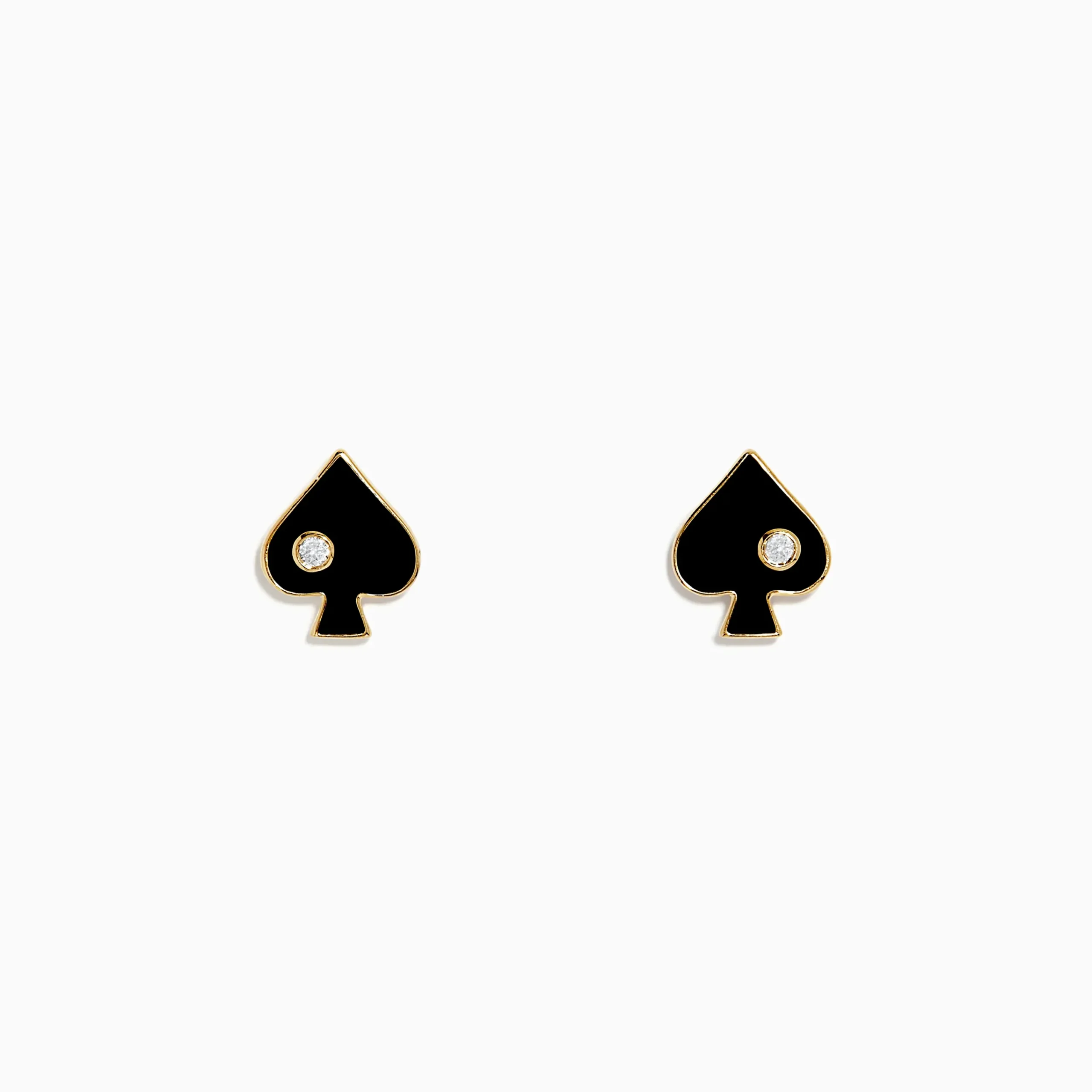 Casino 14K Yellow Gold Diamond Spade Suit Enamel Earrings