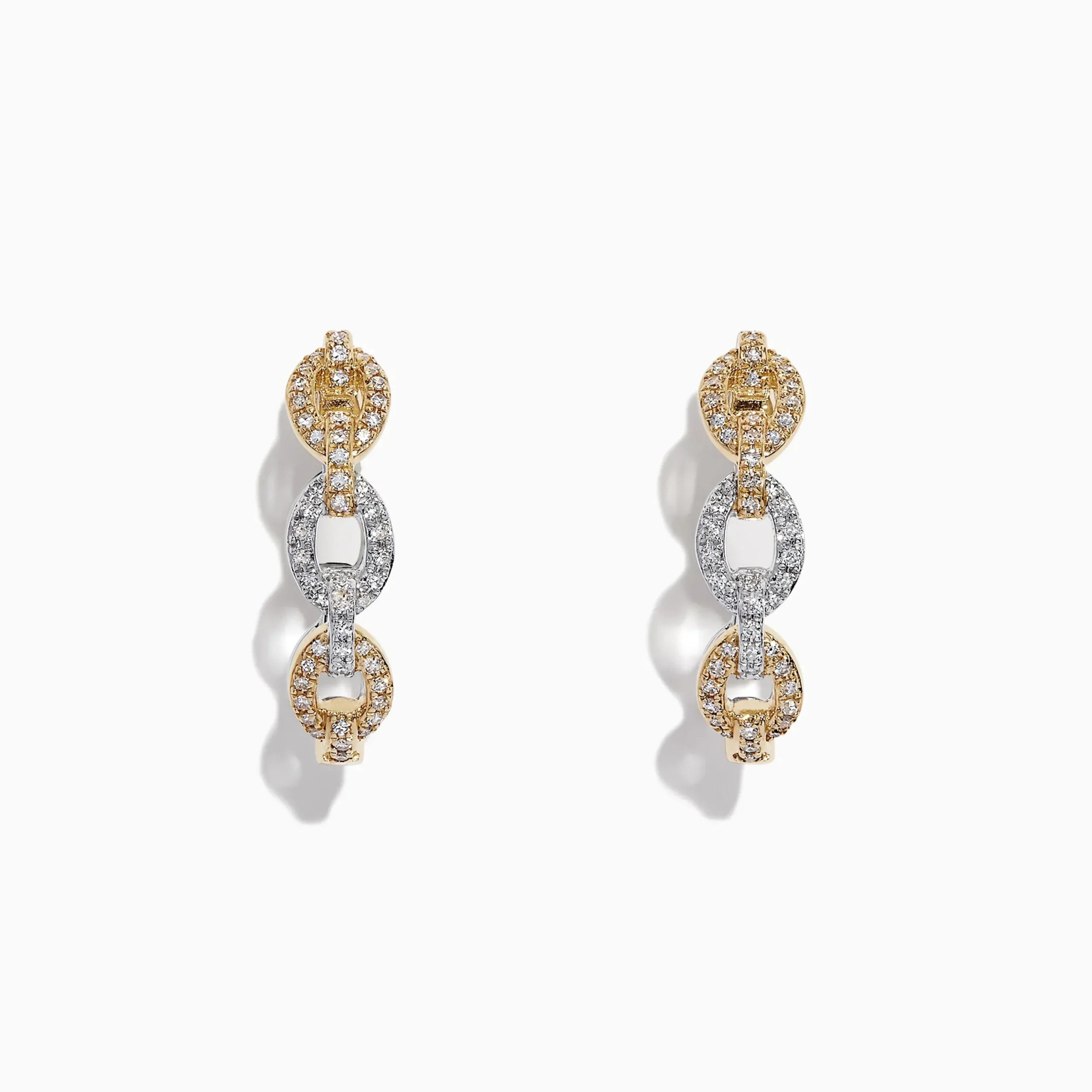 Effy Duo 14K Two Tone Gold Diamond Chain Link Hoop Earrings, 0.40 TCW