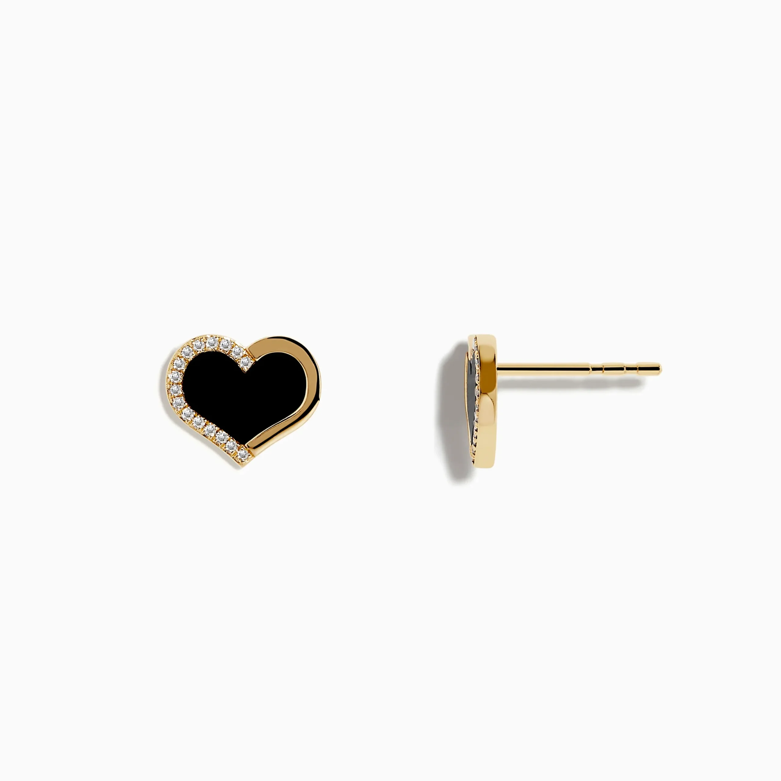 Effy Eclipse 14K Yellow Gold Onyx and Diamond Heart Earrings