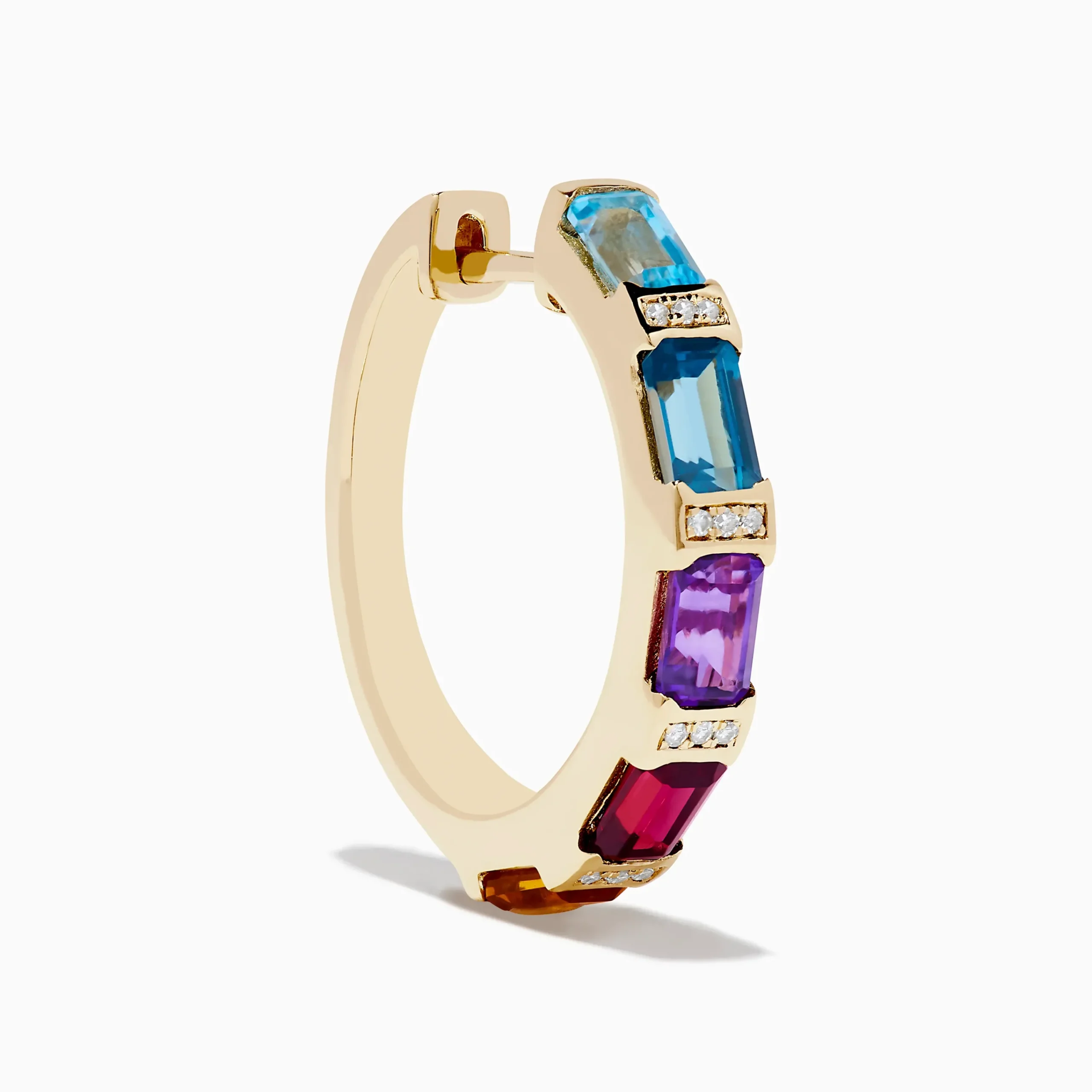 Mosaic 14K Yellow Gold Multi Color Gemstone and Diamond Earrings